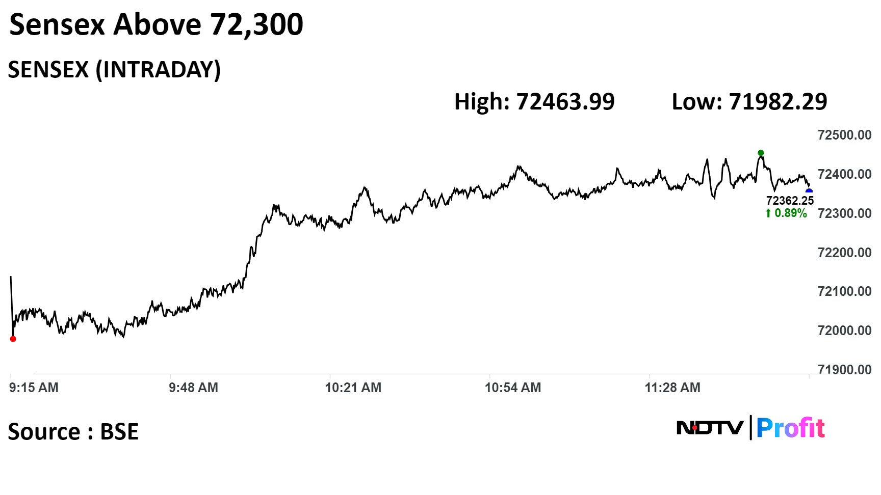 The Nifty 50 index touched a fresh life-time high of 21,848.20, while the Sensex hit an intraday high of 72,454.10.