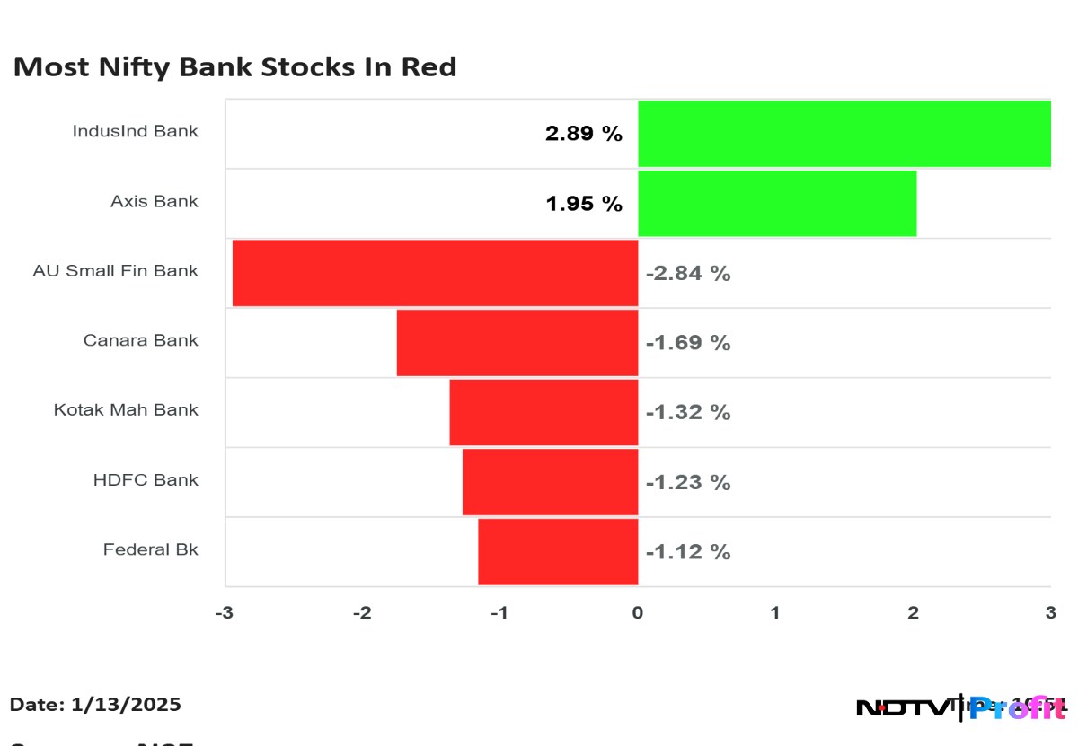 Other major stocks like ICICI Bank, HDFC Bank, and State Bank of India were in the red, contributing to the sector's overall decline.