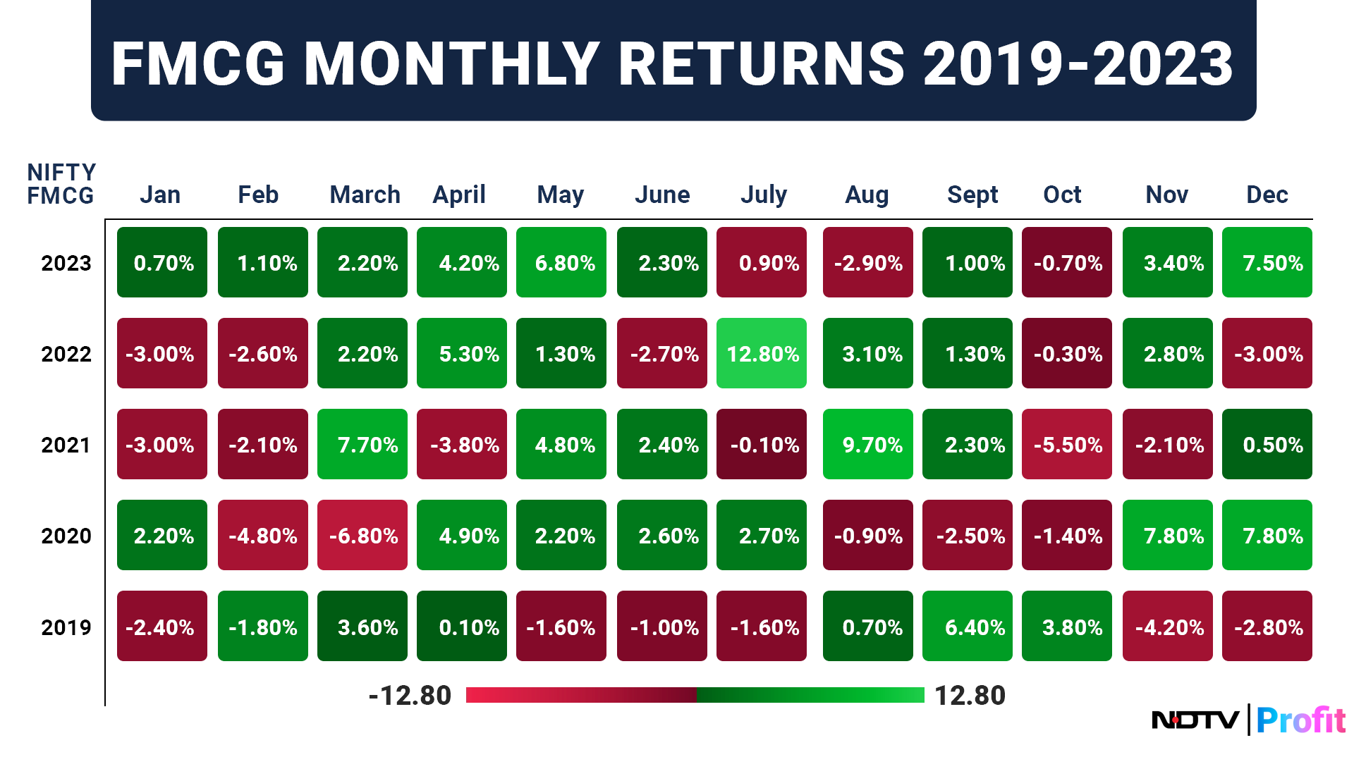 Nifty FMCG Monthly Returns For Last Five Years