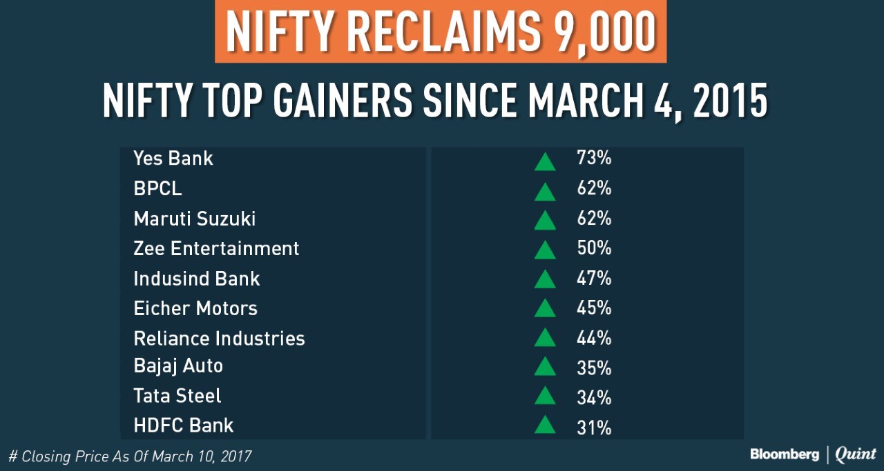The index was last above 9,000 on March 4, 2015 when it hit 9,119.2 in intra-day trading. The broader Nifty 500 index has since has gained 5.9 percent and the Nifty Bank index has advanced 5.5 percent.