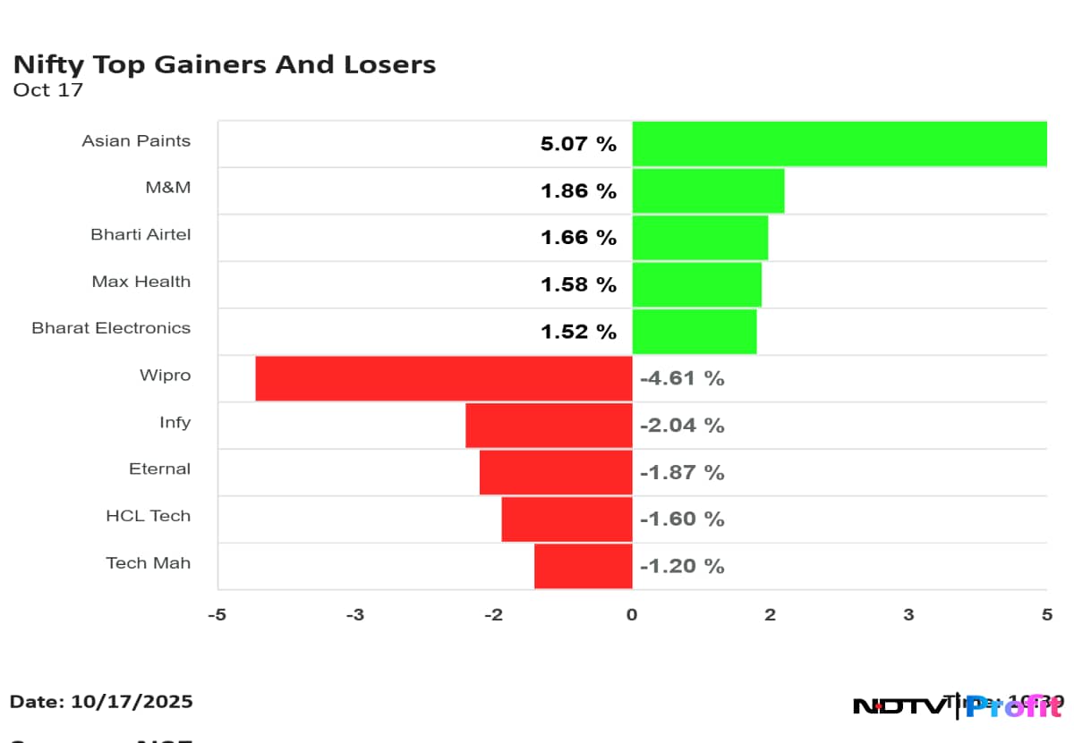 The Nifty Defence and Nifty Finance are the top sectoral gainers. The Nifty Defence has surged 24% since Oct. 17, 2024.