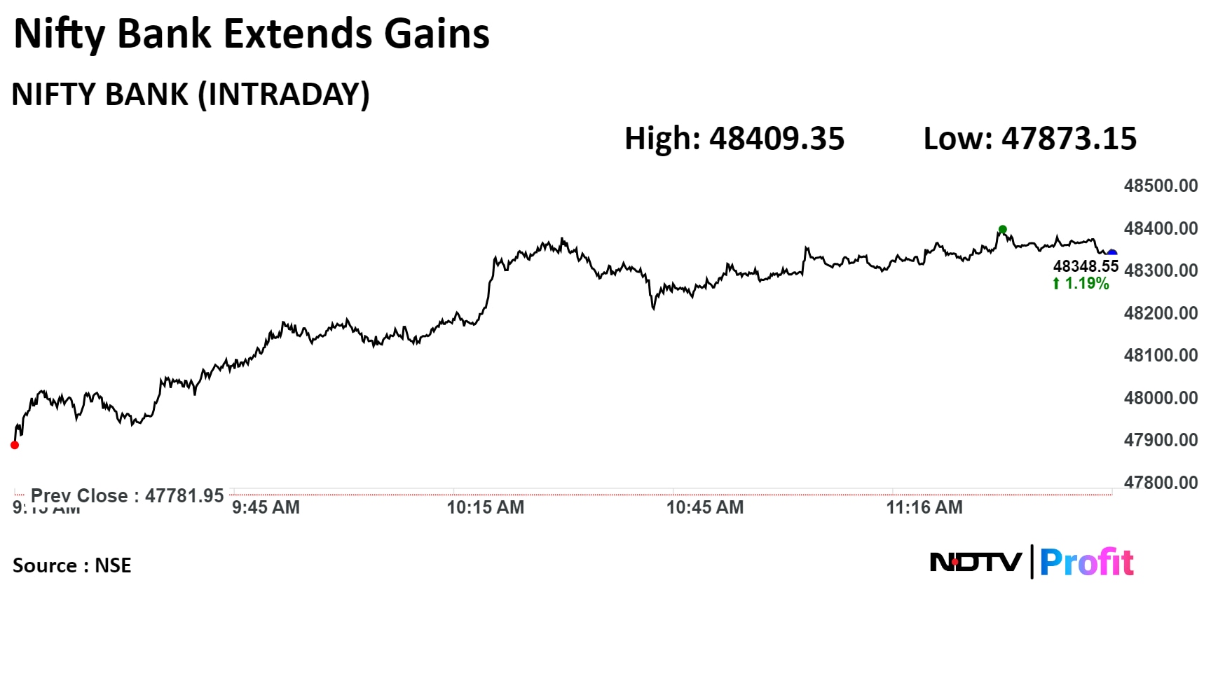 Bank stocks are leading after underperforming in the recent sessions, noted Nilesh Jain, head AVP, technical and derivatives research, at Centrum Broking Ltd. "I think it's time for Bank Nifty to lead from here," he said, adding that 48,800–49,000 will act as resistance.