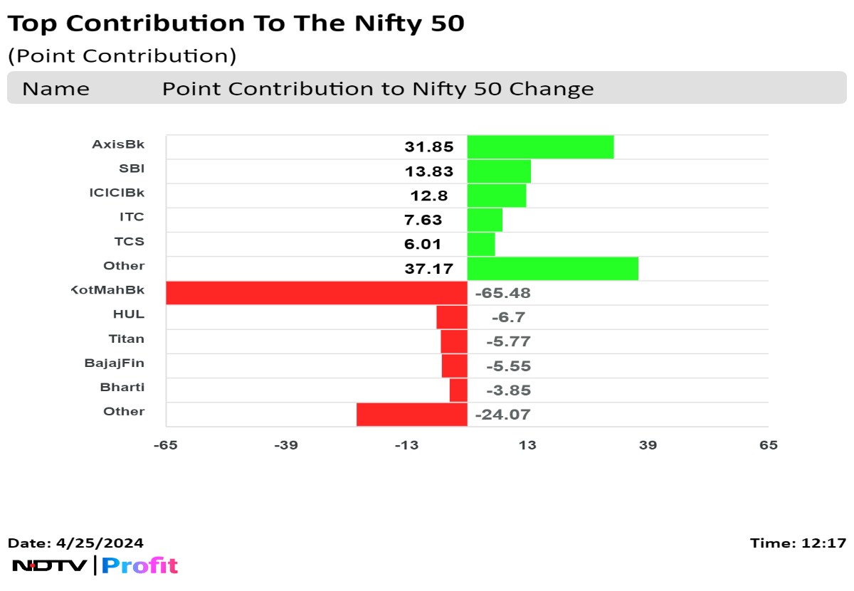 Kotak Mahindra Bank Ltd., Hindustan Unilever Ltd., Titan Co. Ltd., Bajaj Finance Ltd., and Bharti Airtel Ltd. weighed on the index.