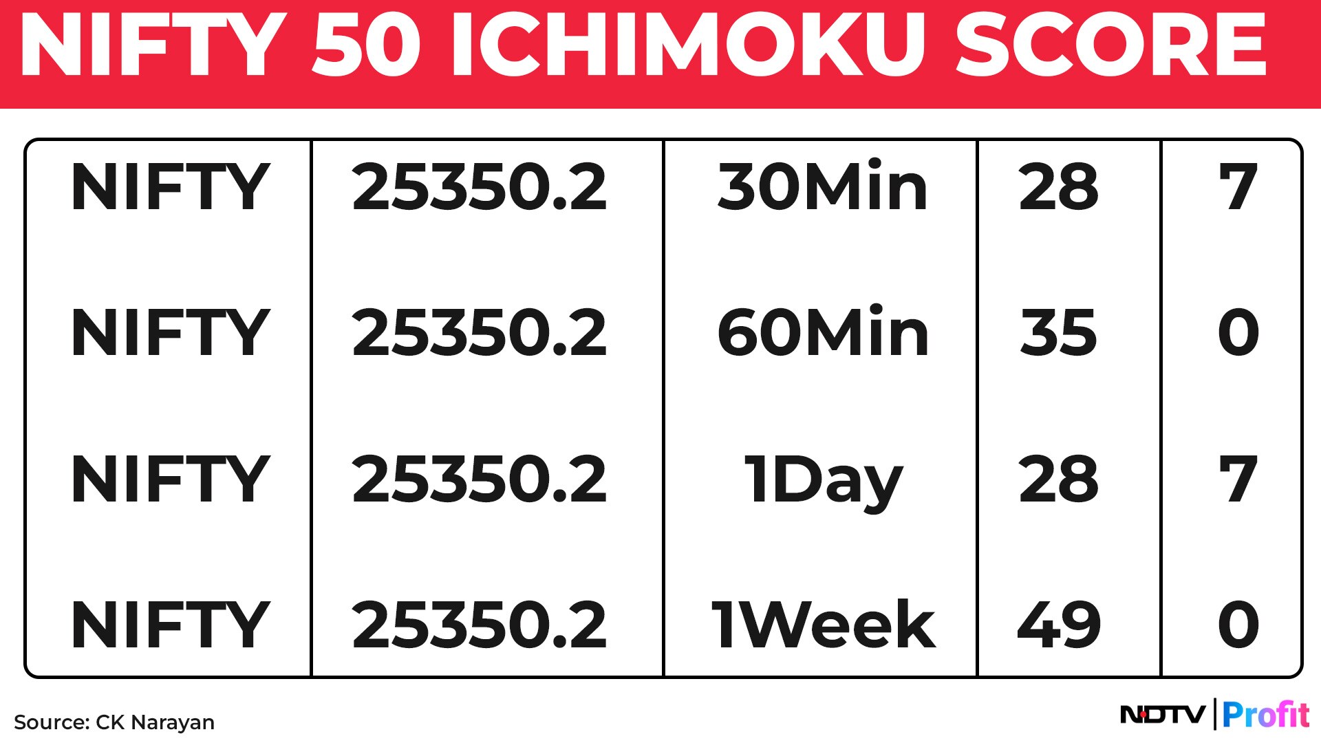 I had shown the charts for the sentiment readings in the last week with weekly charts reading Hopeful and daily charts reading Neutral. Well, they remain pretty much in the same place. We get an idea of a similar read from the Ichimoku score reads across different time frames as shown in Table 1.