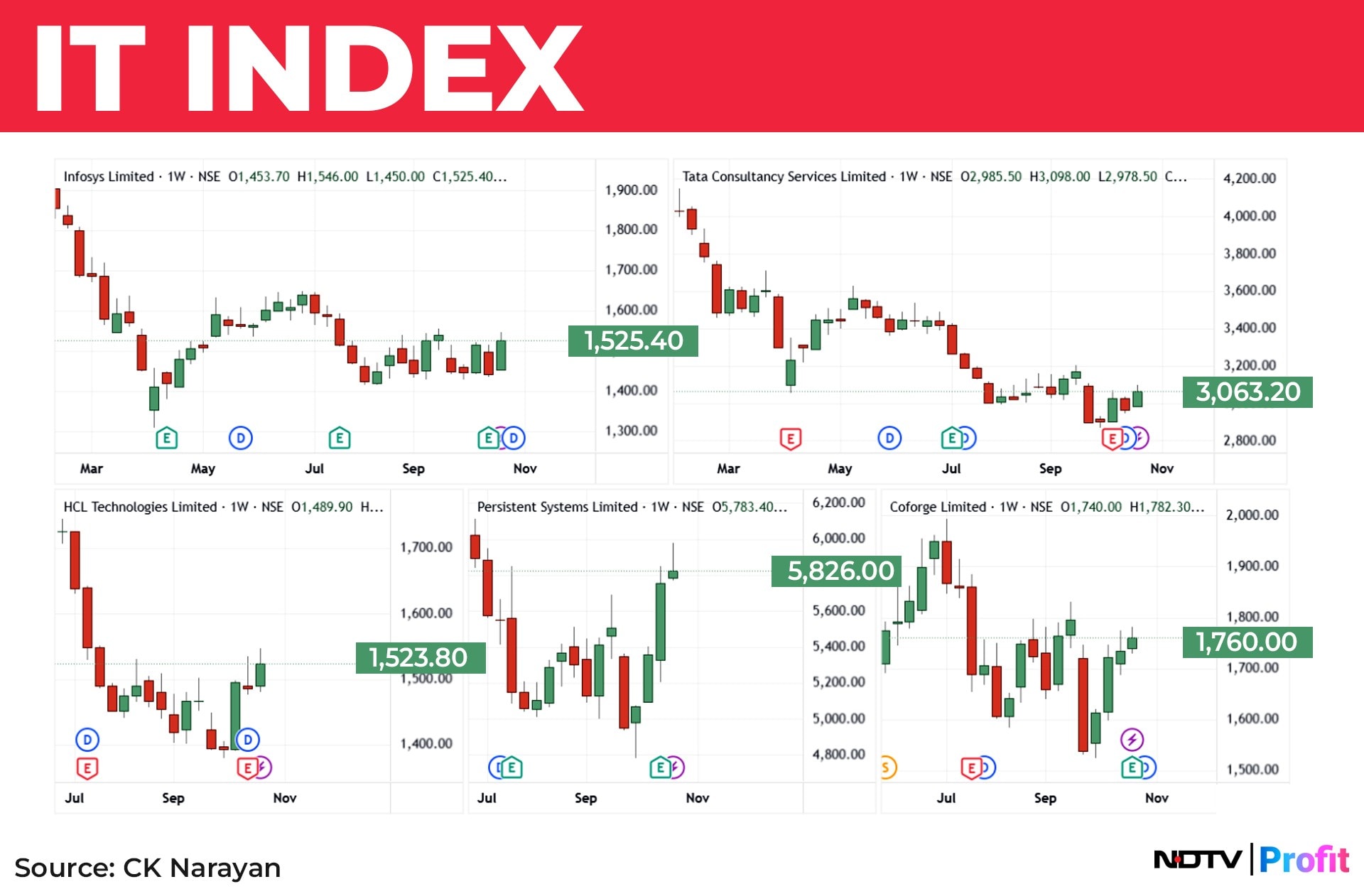 Should be good enough to keep the flag flying for the sector and given their decent weightage on the Nifty, should contribute favourably to the upside. The upside gap seen in the IT index chart as seen in Chart 3 is a change this time. Let's see how that unfolds. It is looking positive for now. (Price and patterns)