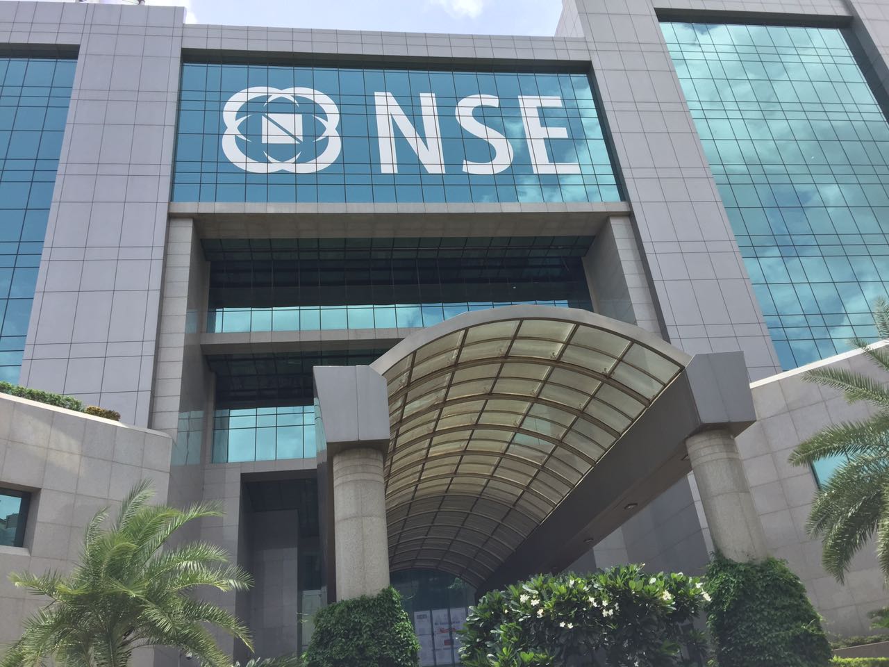 The National Stock Exchange (NSE) logo is displayed on the building in Mumbai, India. (Photograph: BQ Prime)