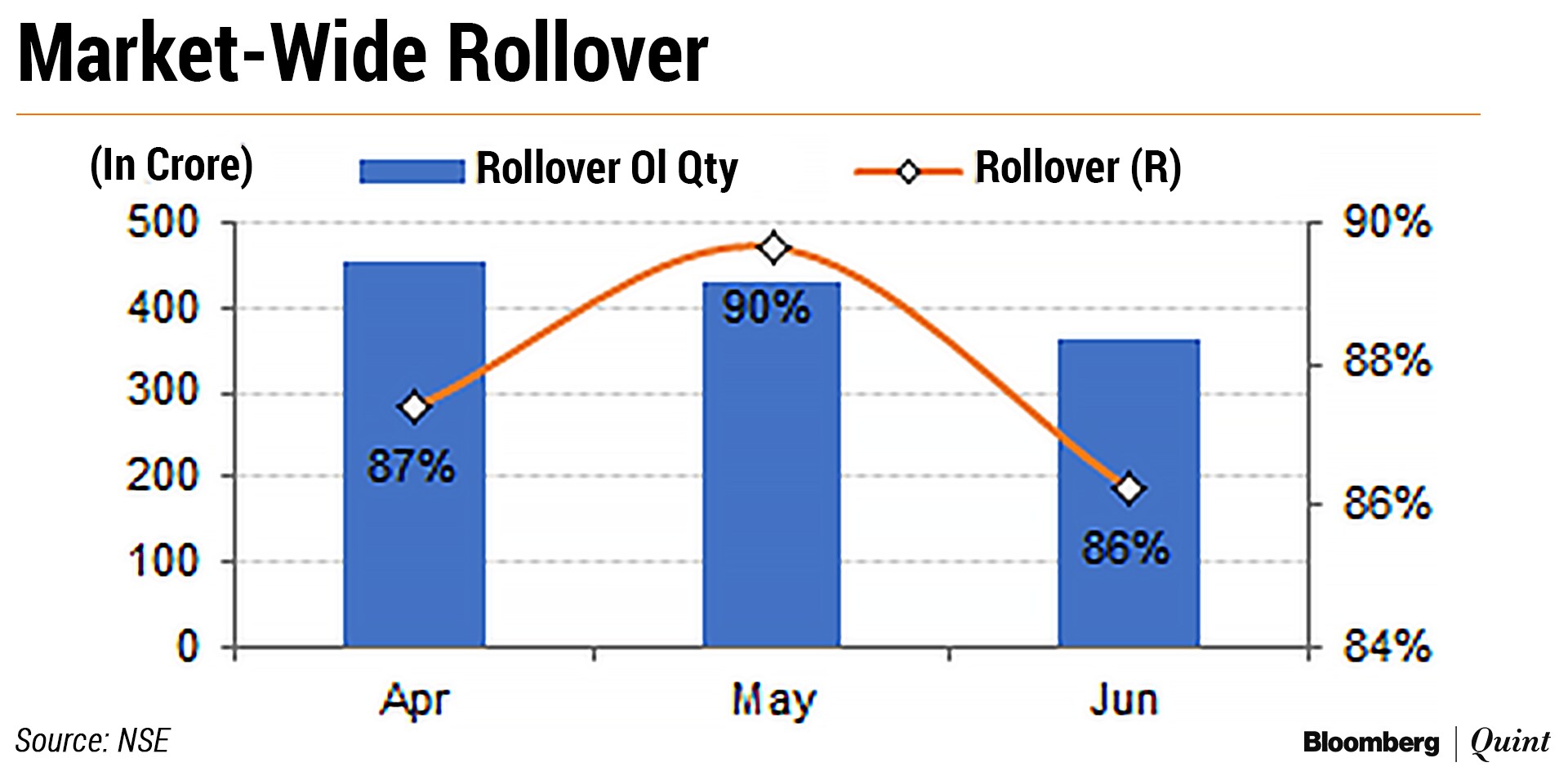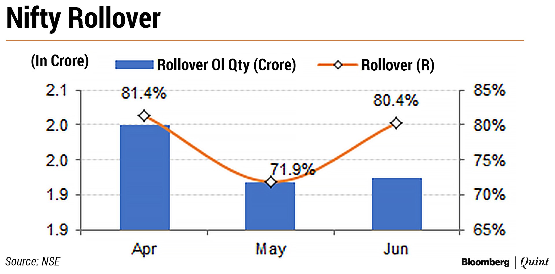 The Nifty rollover data for July series stood at 80.4 percent with an open interest 1.92 crore shares, against 71.9 percent in the June contract, according to data available on National Stock Exchange's website. That's because investors took fresh positions in the next series. The rollover cost is higher at 0.55 percent than 0.27 percent in the previous series because of a dividend impact.