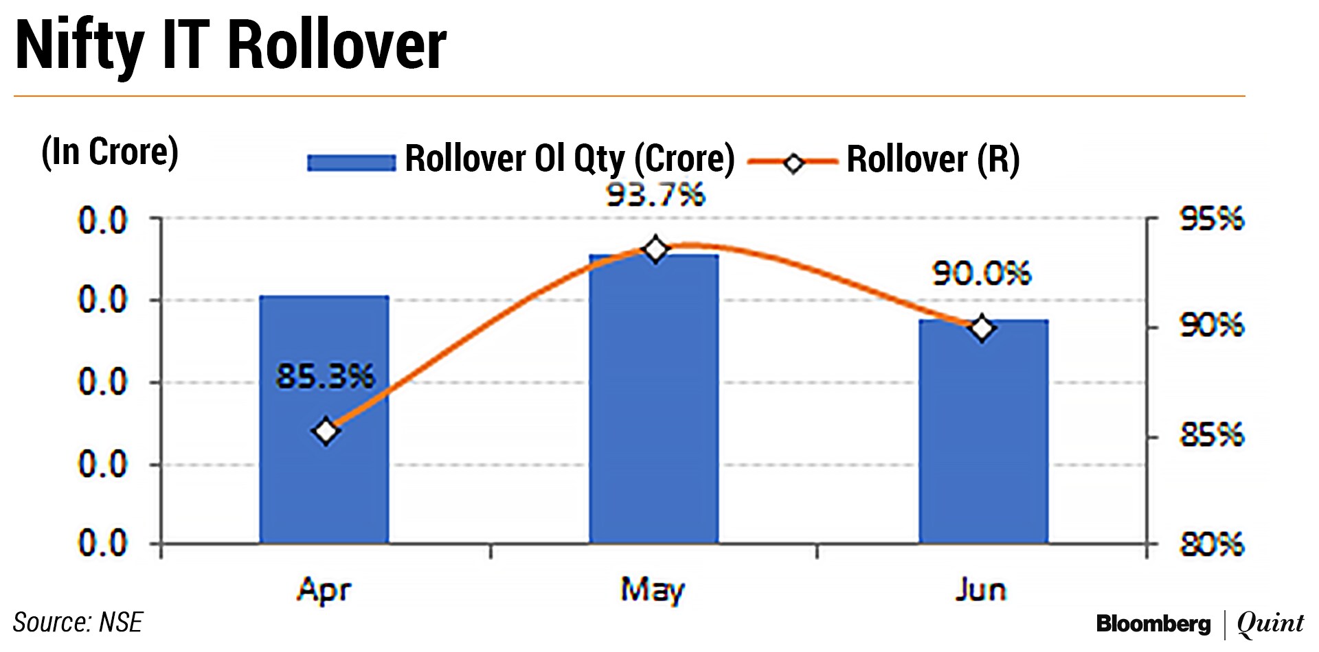 The Nifty IT Index ended flat in the June series. Rollovers were at 90 percent with open interest of 15,000 shares against 93.7 percent in the previous series with an open interest of 19,000 shares, indicating liquidation of long positions.
