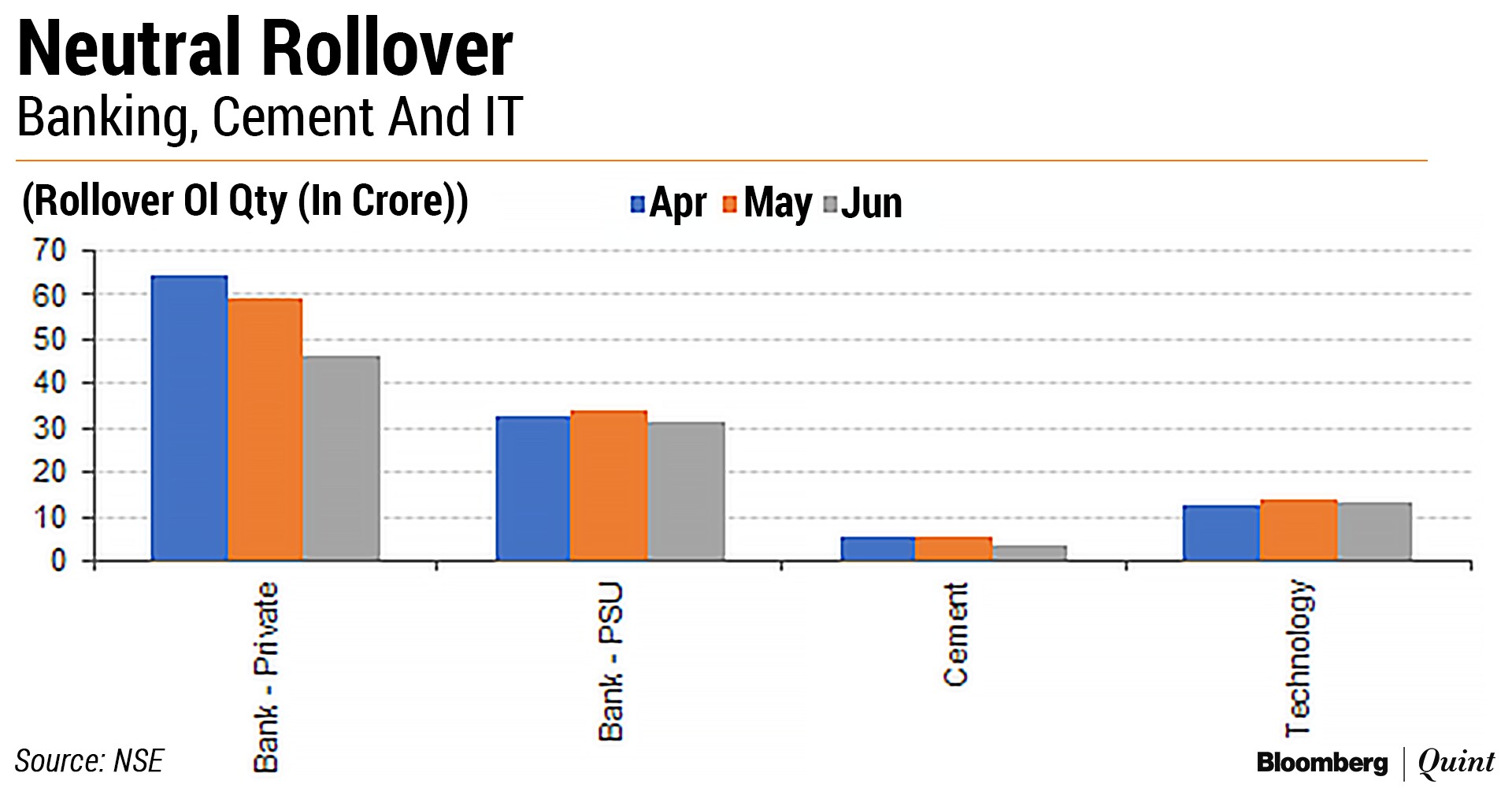 The Bank Nifty contracts witnessed liquidation of position by traders in the June series. The bank futures have an open interest of 0.18 crore shares at the beginning of July series compared with 0.19 crore in the previous contract. In percentage terms, however, Nifty Bank rollovers were higher at 83 percent against 81 percent in preceding series.
