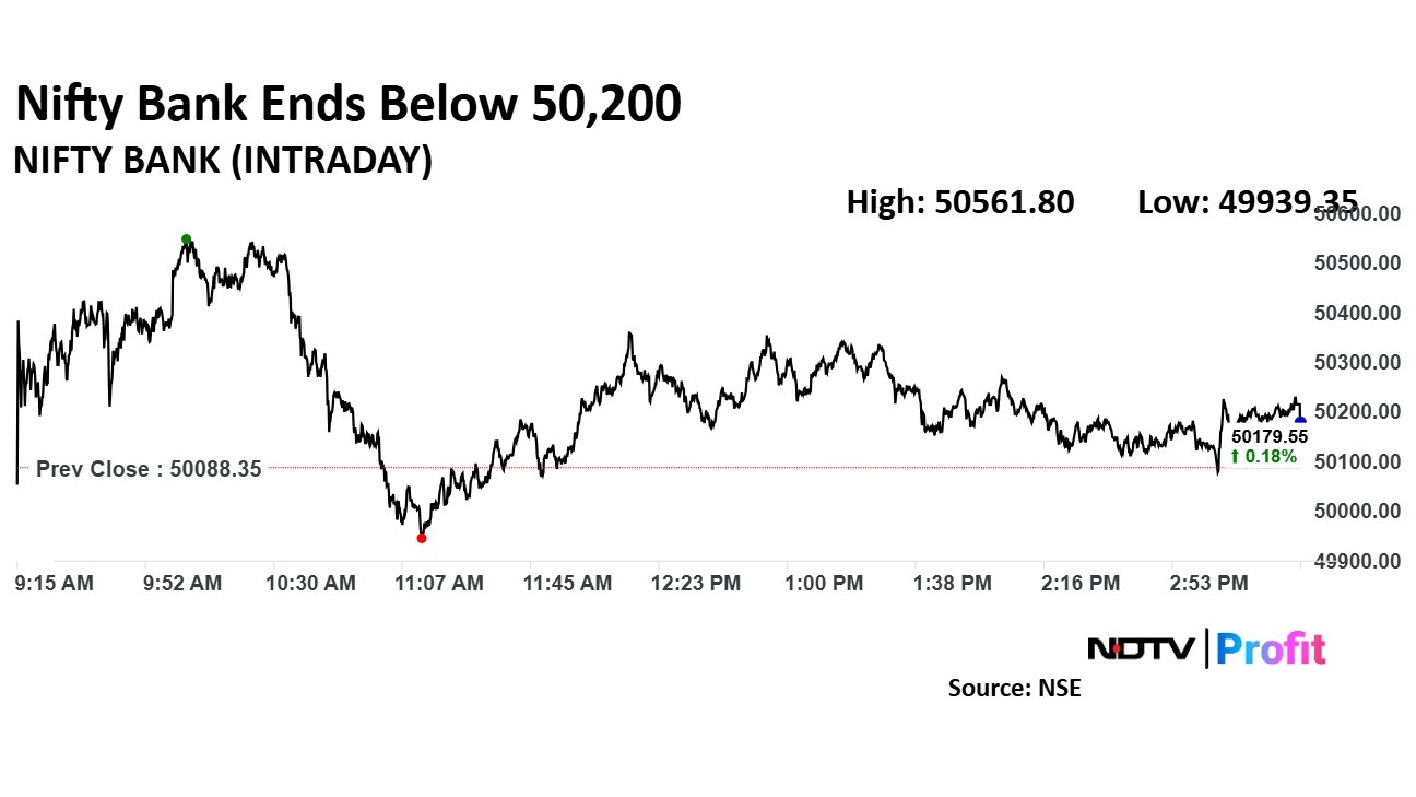 The Nifty Bank ended 0.18% higher at 50,179.55.