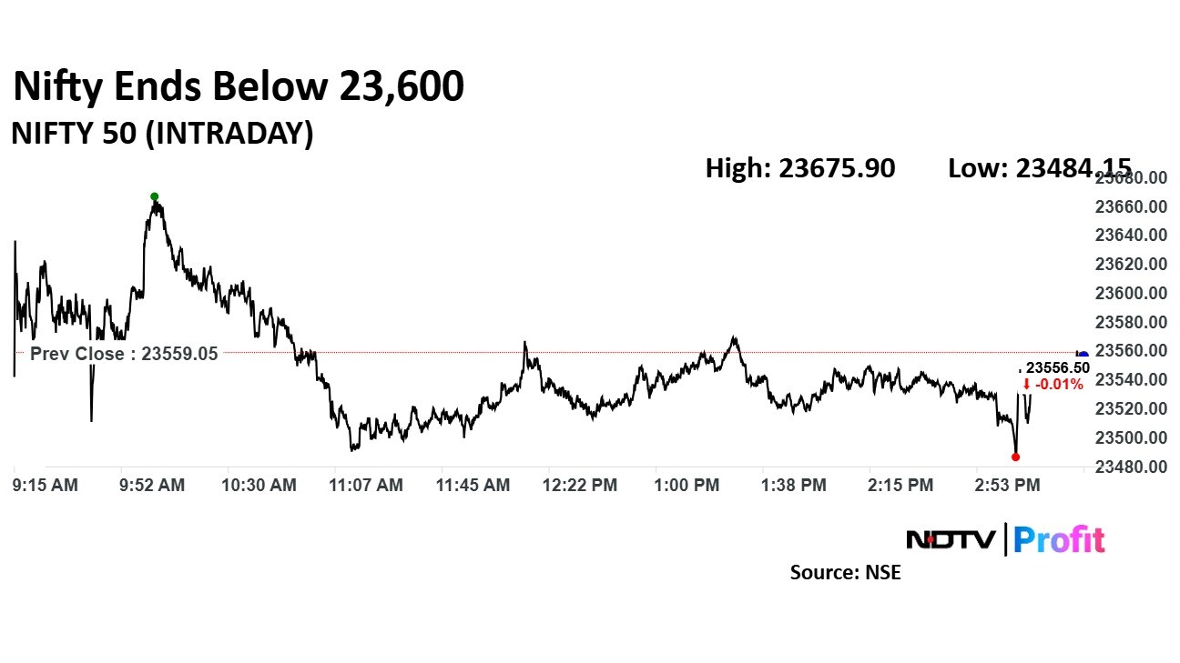The Nifty 50 ended 0.11% lower at 23,532.70.