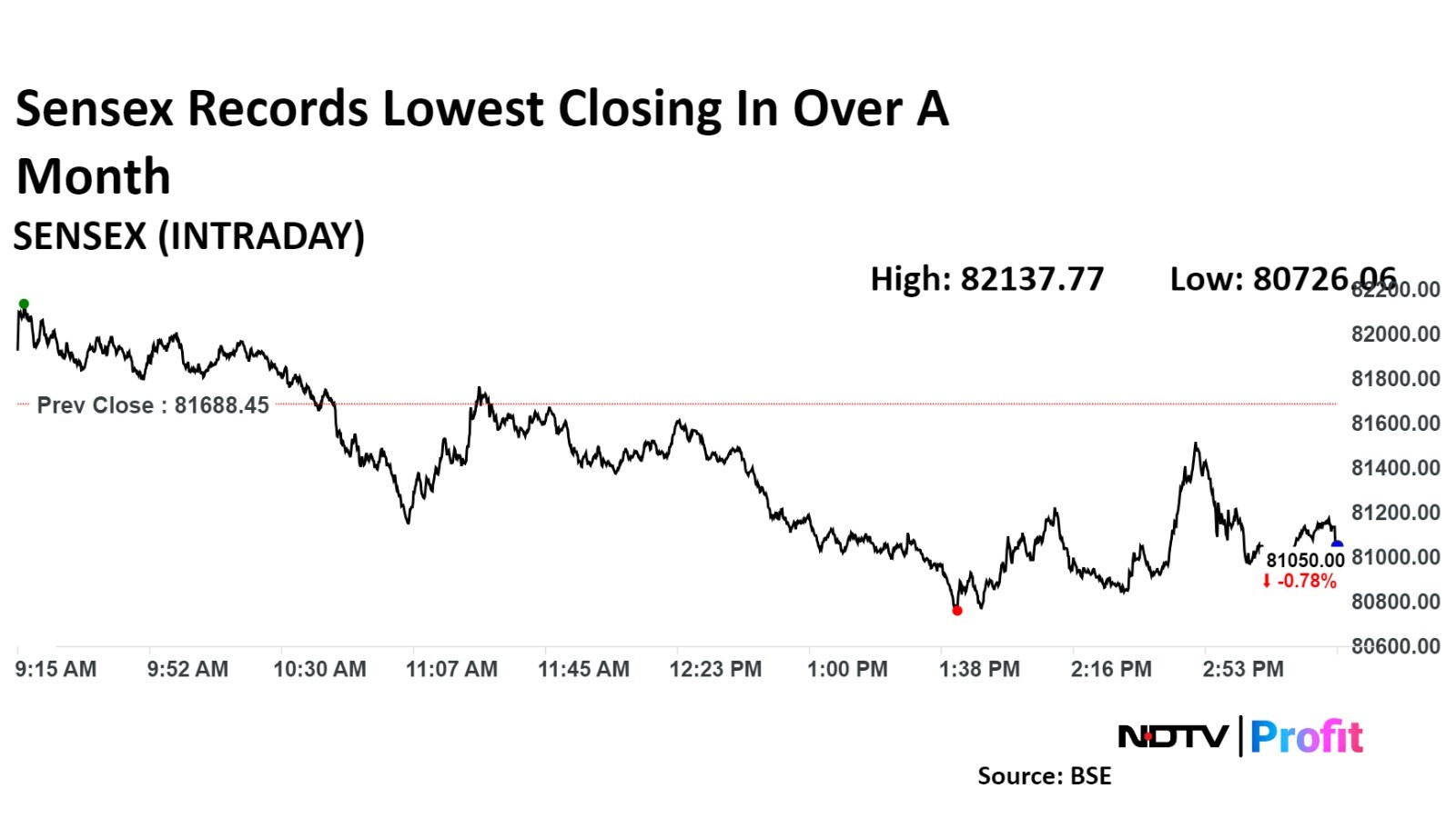 the Sensex closed 638.45 points or 0.78% lower at 81,050.00.