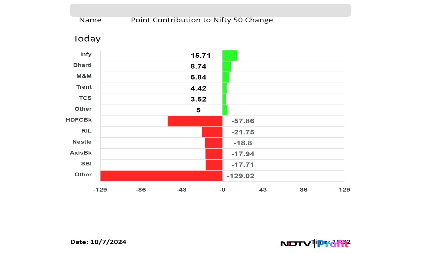 Infosys Ltd., Bharti Airtel Ltd., Mahindra & Mahindra Ltd., Trent Ltd., and Tata Consultancy Services Ltd. limited gains in the index.