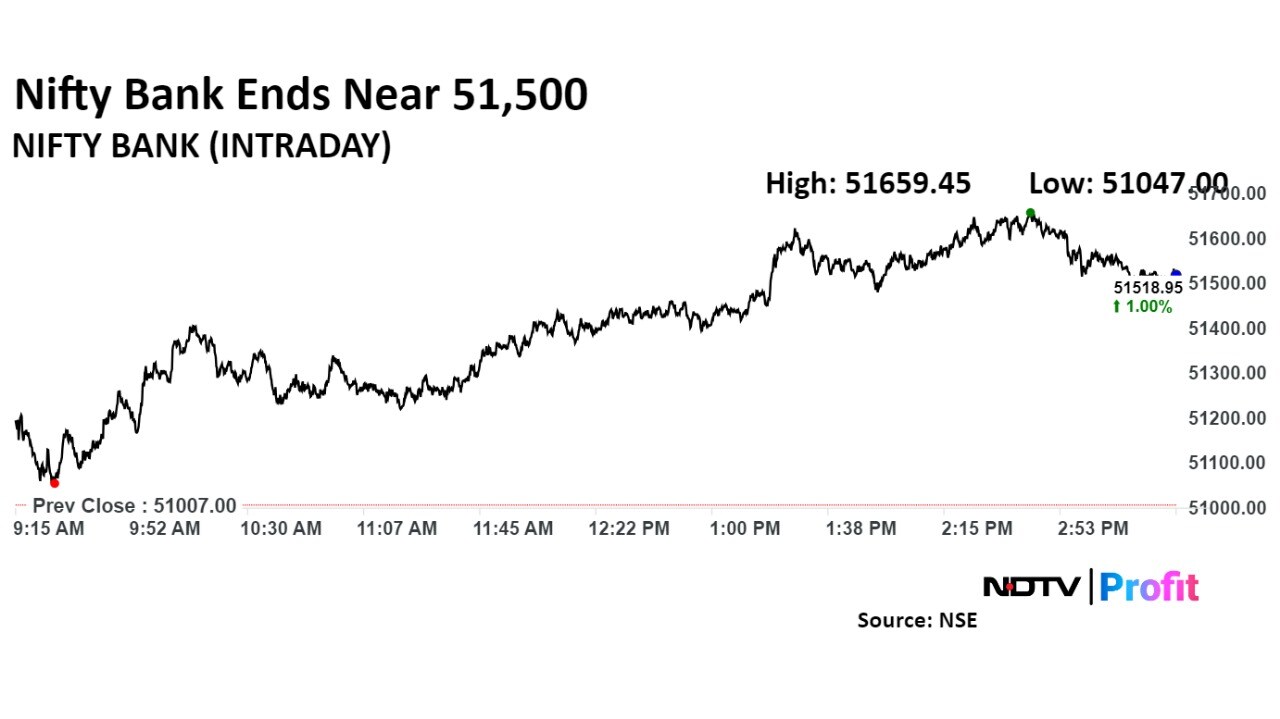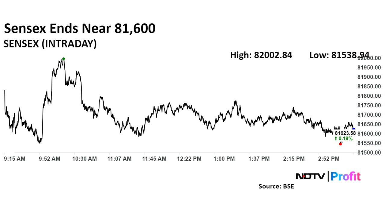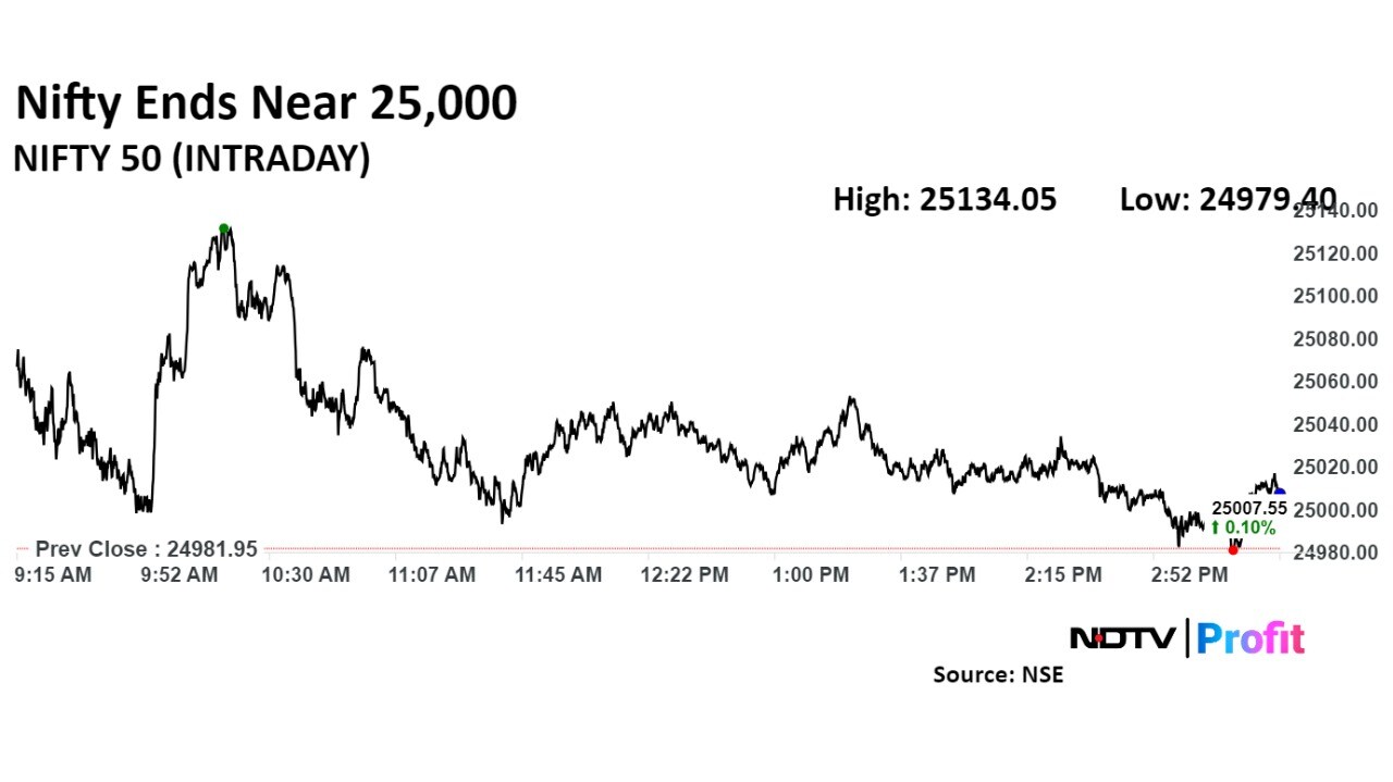 Intraday, the NSE Nifty 50 and S&P BSE Sensex rose around 0.6%. The Nifty ended 0.07%, or 16.50 points up at 24,998.45 and Sensex advanced 0.18%, or 144.3 points to close at 81,611.4.