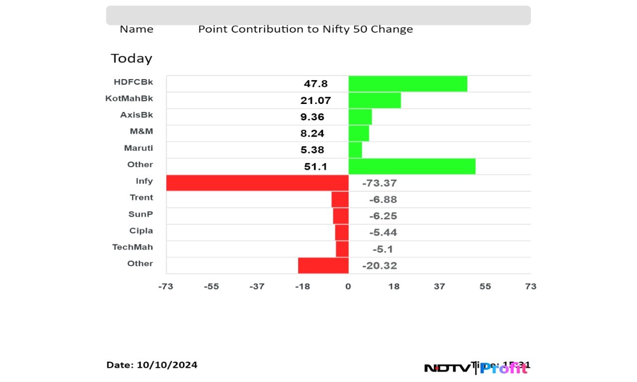 Shares of HDFC Bank Ltd., Kotak Mahindra Bank Ltd., Axis Bank Ltd., Mahindra & Mahindra Ltd., and Maruti Suzuki India Ltd. contributed the most to gains in the Nifty.