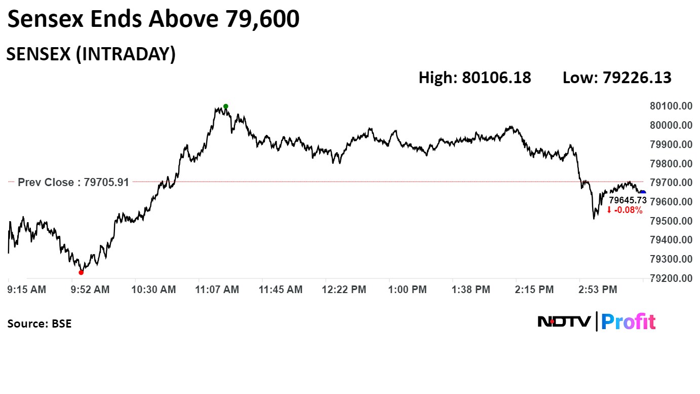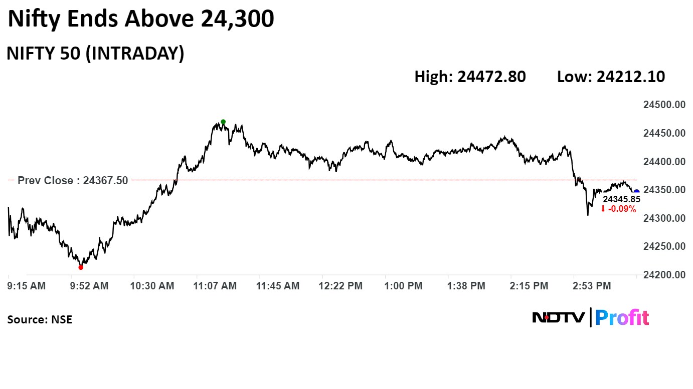 Intraday, the Nifty declined as much as 0.64% to 24,212.10 and the Sensex fell 0.60% to 79,226.13.