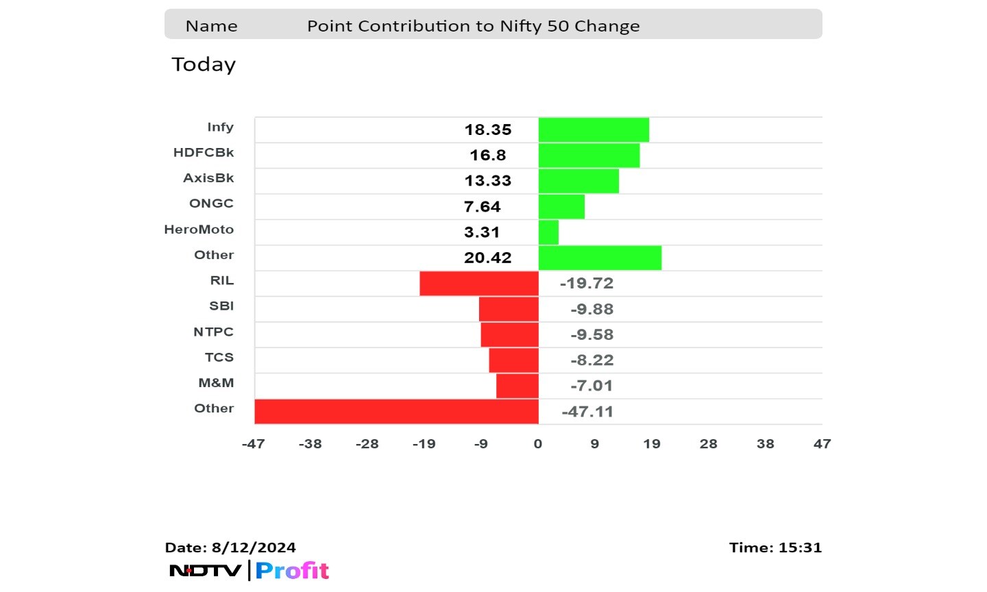 Reliance Industries Ltd., State Bank of India, NTPC Ltd., Tata Consultancy Services Ltd. and Mahindra & Mahindra Ltd. weighed on the benchmark index.