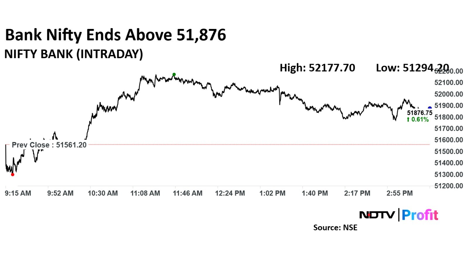The Nifty Bank ended 0.61% higher at 51,876.75