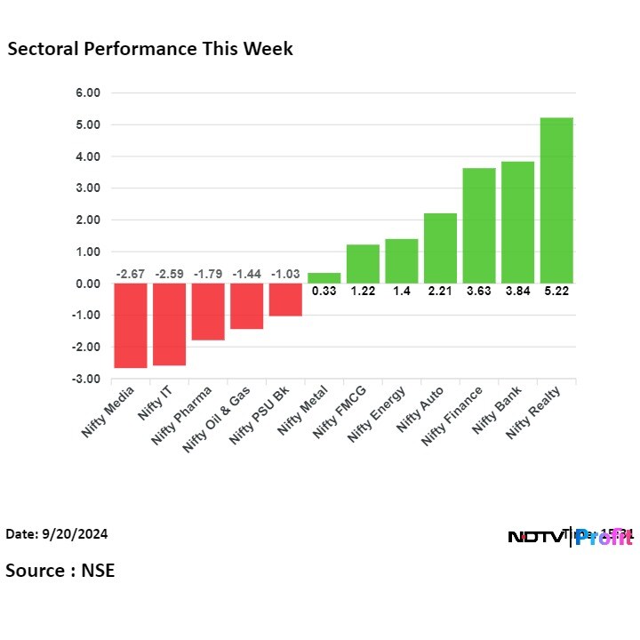 The Nifty added 1.7% this week and the Sensex jumped 1.99%. Among sectors, Nifty Realty and Nifty Bank were the top gainers, and Nifty Media and Nifty IT fell.