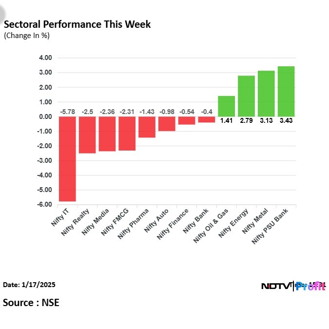 IT stocks were among the worst performers as worries over revenue guidance by top players dampened outlook, dragging the Nifty IT down by 6% in the week.