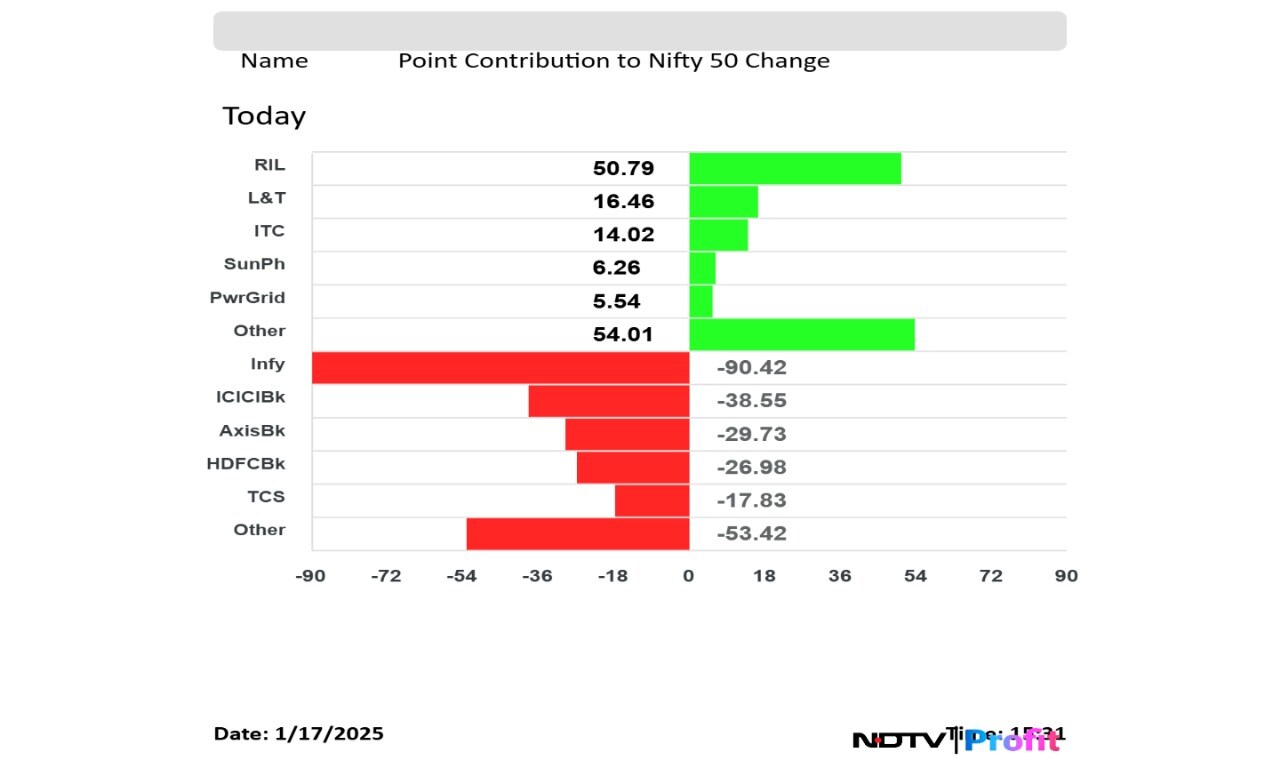Reliance Industries Ltd., Larsen & Toubro Ltd., ITC Ltd., Sun Pharmaceutical Industries Ltd. and Power Grid Corp. led the gains in the Nifty in terms of point contribution.