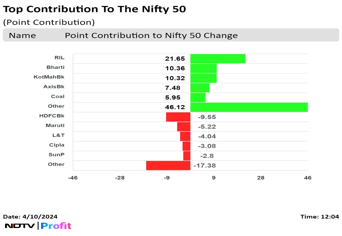 Reliance Industries Ltd., Bharti Airtel Ltd., Kotak Mahindra Bank Ltd., Axis Bank Ltd., and Coal India Ltd. were adding to the Nifty.