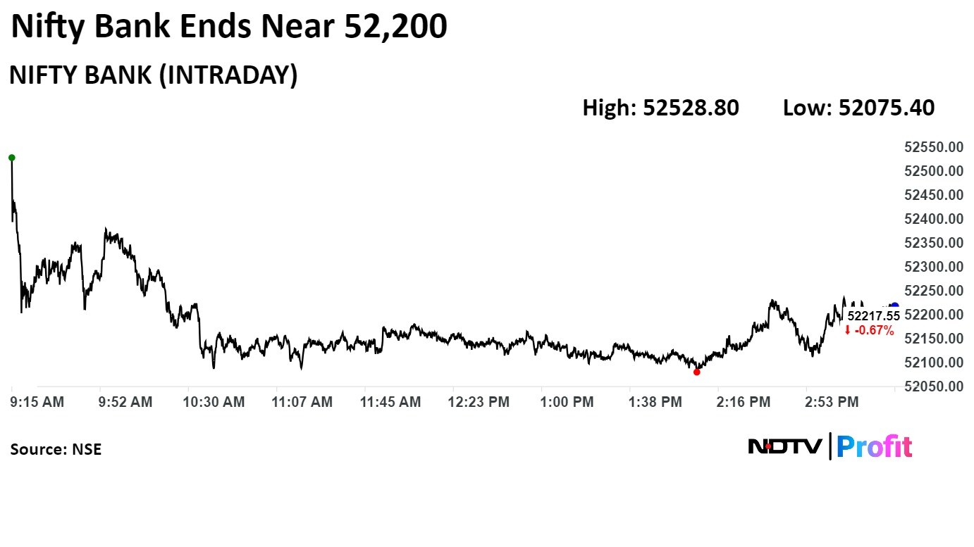 Most sectoral indices on the NSE closed lower, with the Nifty Auto, Media and Metal falling the most.