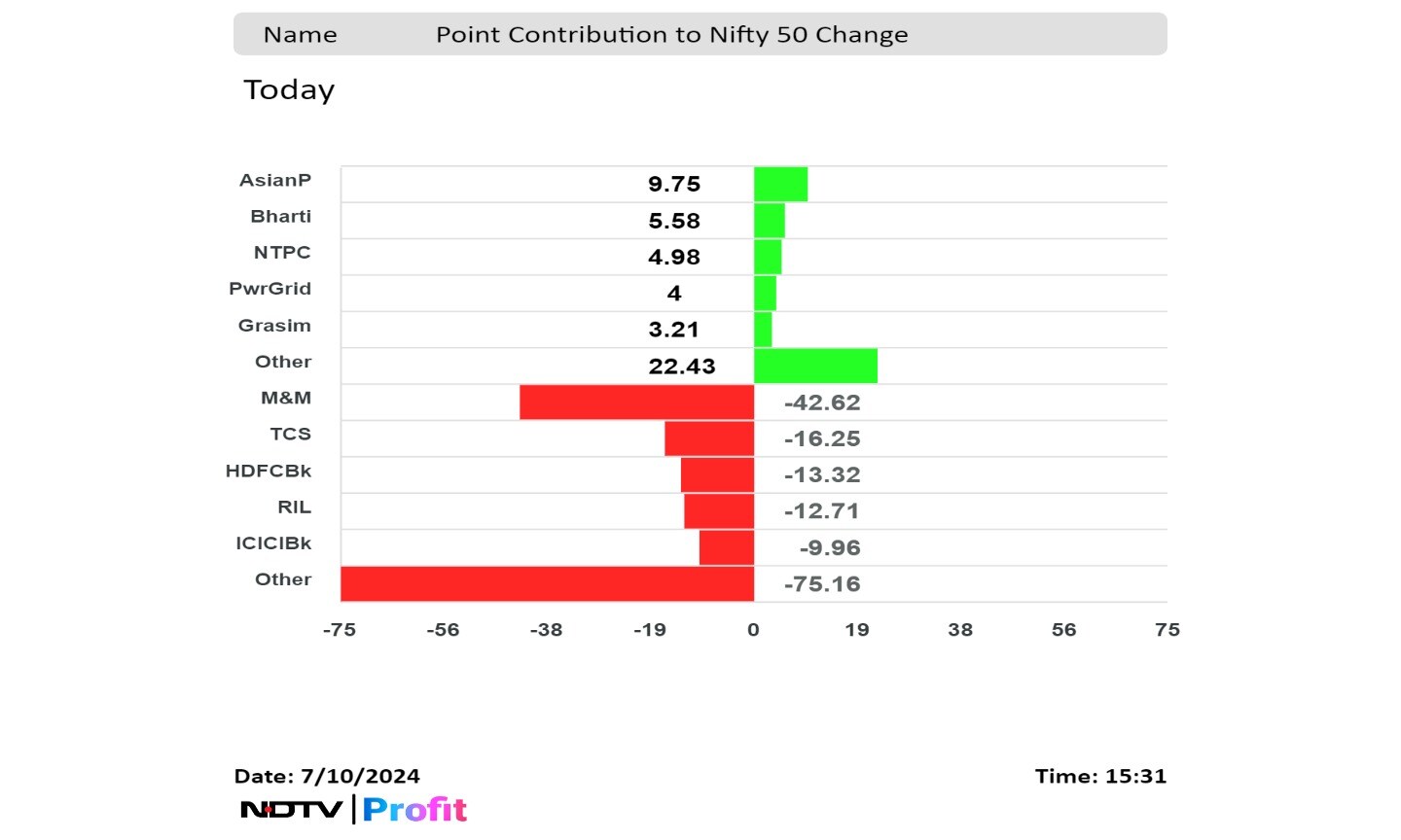 Asian Paints Ltd., Bharti Airtel Ltd., NTPC Ltd., Power Grid Corp., and Grasim Industries Ltd. cushioned the fall.