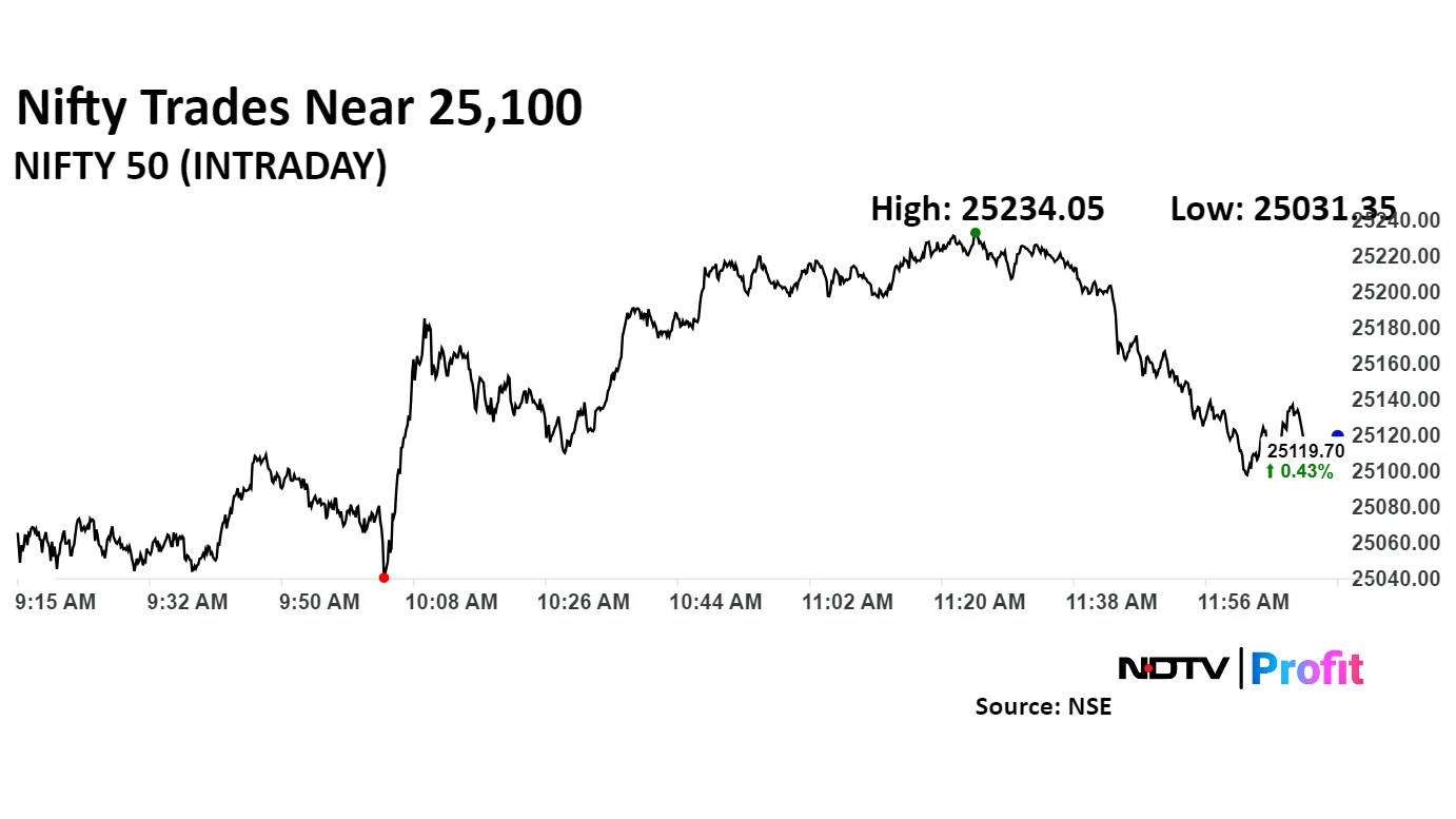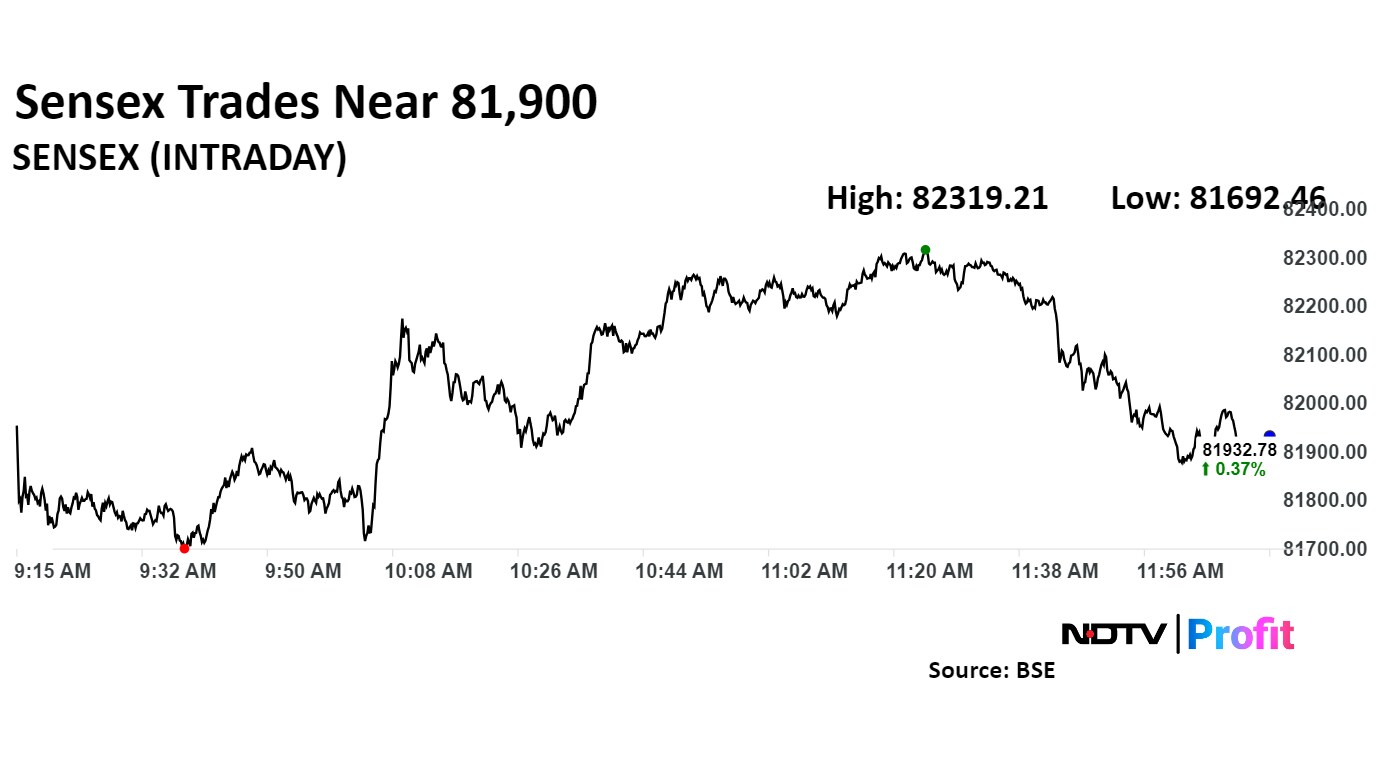 As of 12:23 p.m., the Nifty 50 was trading 100.50 points, or 0.40%, higher at 25,113.65, and the Sensex gained 268.66 points, or 0.33%, to trade at 81,903.47. The Nifty had surged 0.88%, or 220.90 points, to 25,234.05, and the Sensex rose 0.84% to 82,319.21 after the monetary policy announcement.