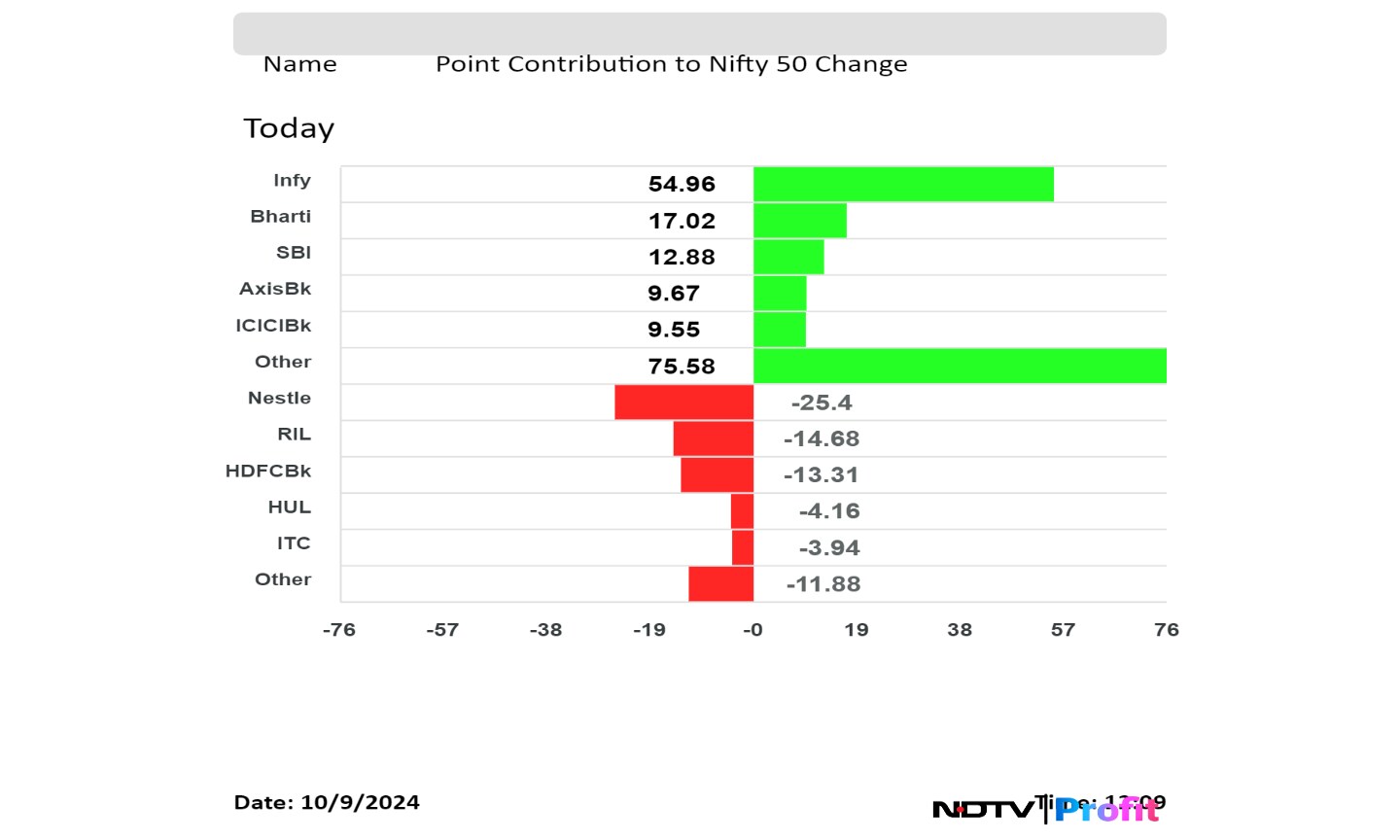 Infosys Ltd., Bharti Airtel Ltd., State Bank of India, Axis Bank Ltd., and ICICI Bank Ltd. added to the gain in Nifty.