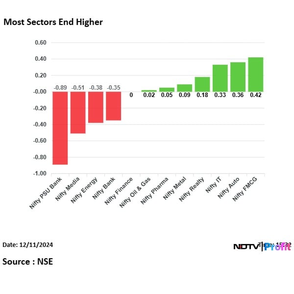 Most sectoral indices on the National Stock Exchange rose, with the Nifty FMCG, Auto and IT rising the most.
