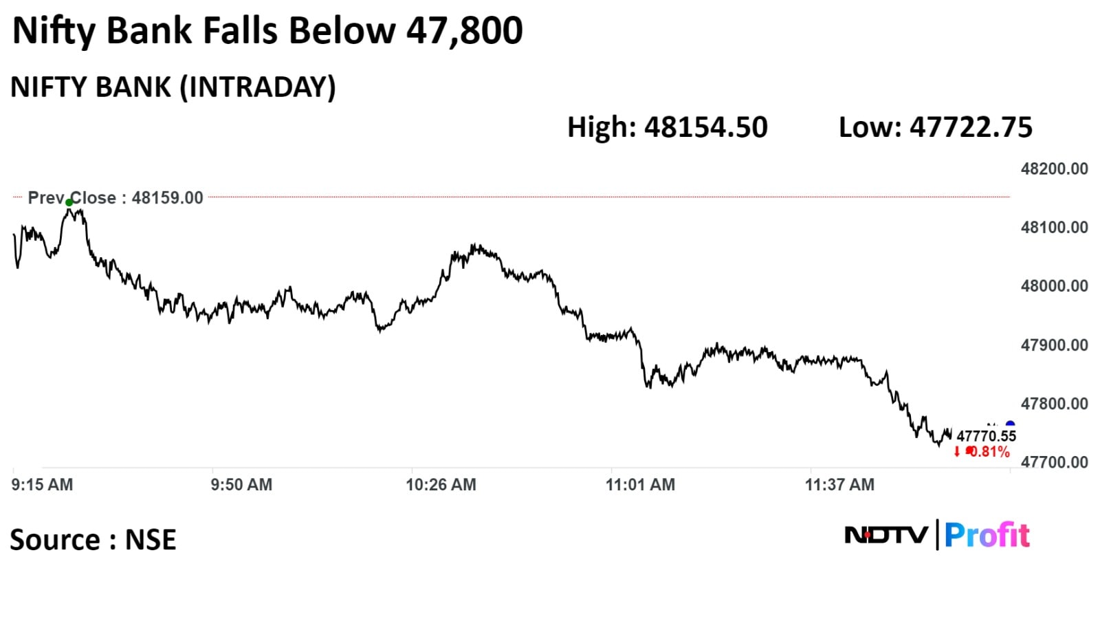 Most bank stocks declined on the NSE, with the HDFC Bank Ltd., State Bank of India and Bank of Baroda declining the most. Only AU Small Finance Bank was up 0.05% on the NSE.
