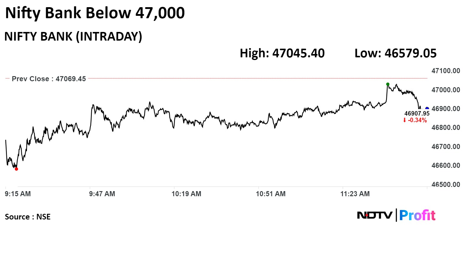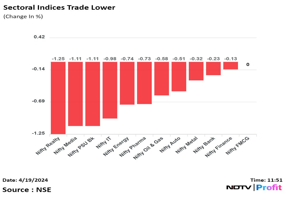 All the 12 sectors on the NSE were trading in the red, with the Nifty Realty falling the most.