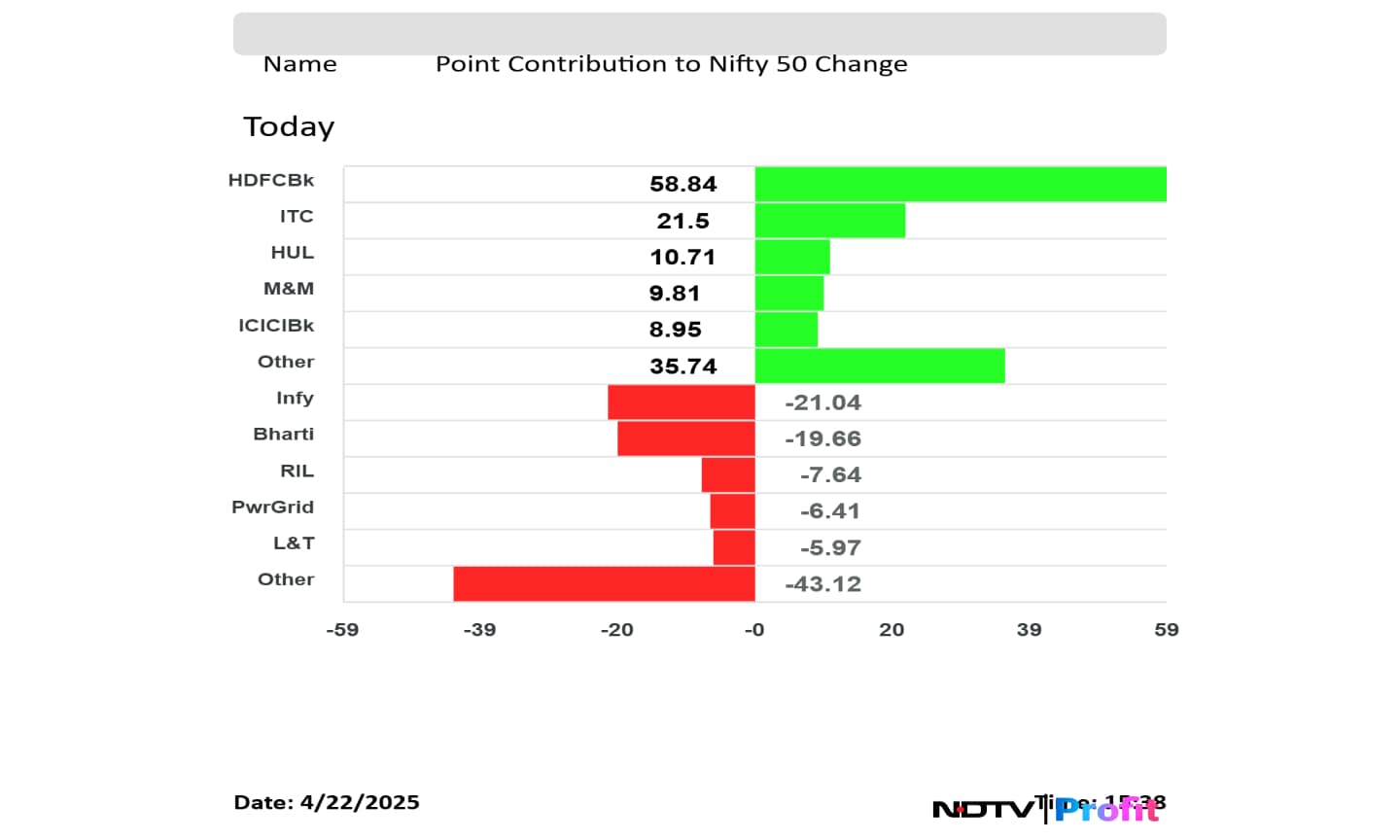 HDFC Bank Ltd., ITC Ltd. and Hindustan Unilever Ltd. emerged as the top gainers in point contribution for the day. On the other hand, Larsen & Toubro Ltd., PowerGrid Corp. and Reliance Industries Ltd. were the worst performers on the Nifty 50.
