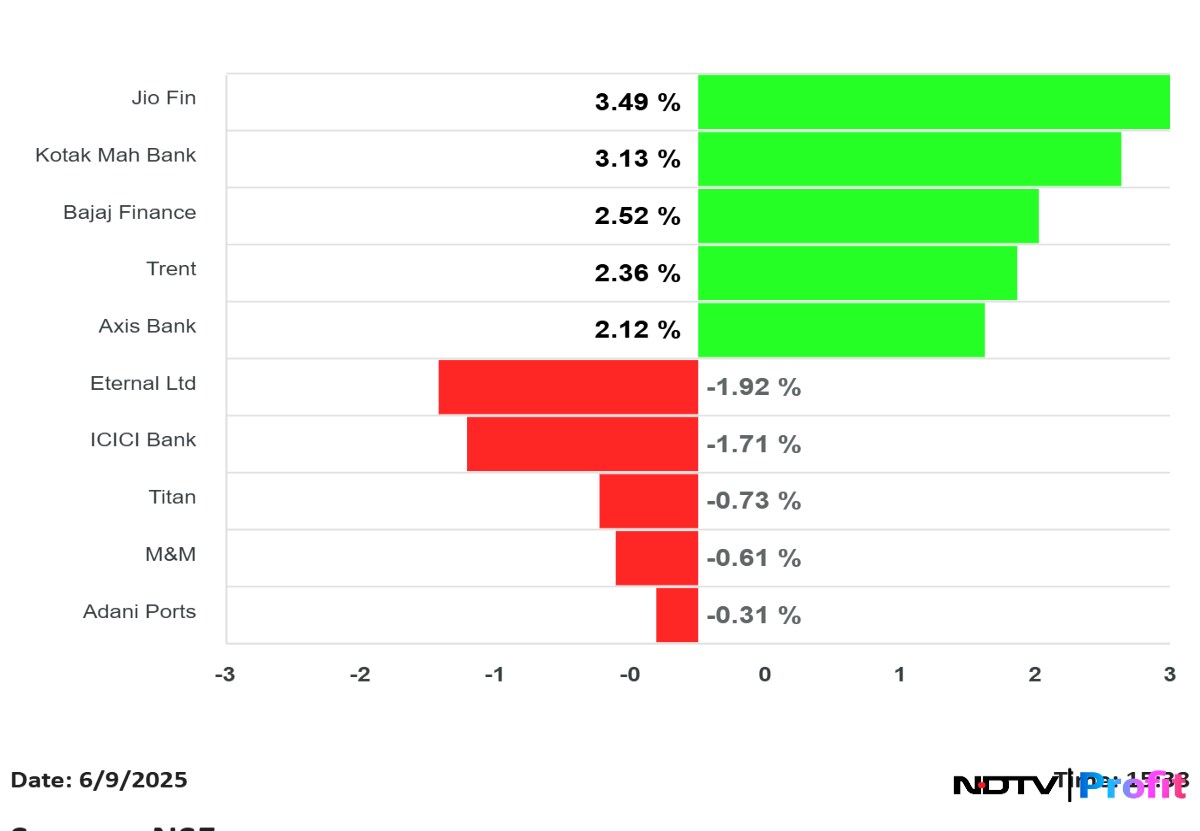 Nifty Top Gainers, Losers On June 9: Jio Financial, Kotak Mahindra Bank To Eternal