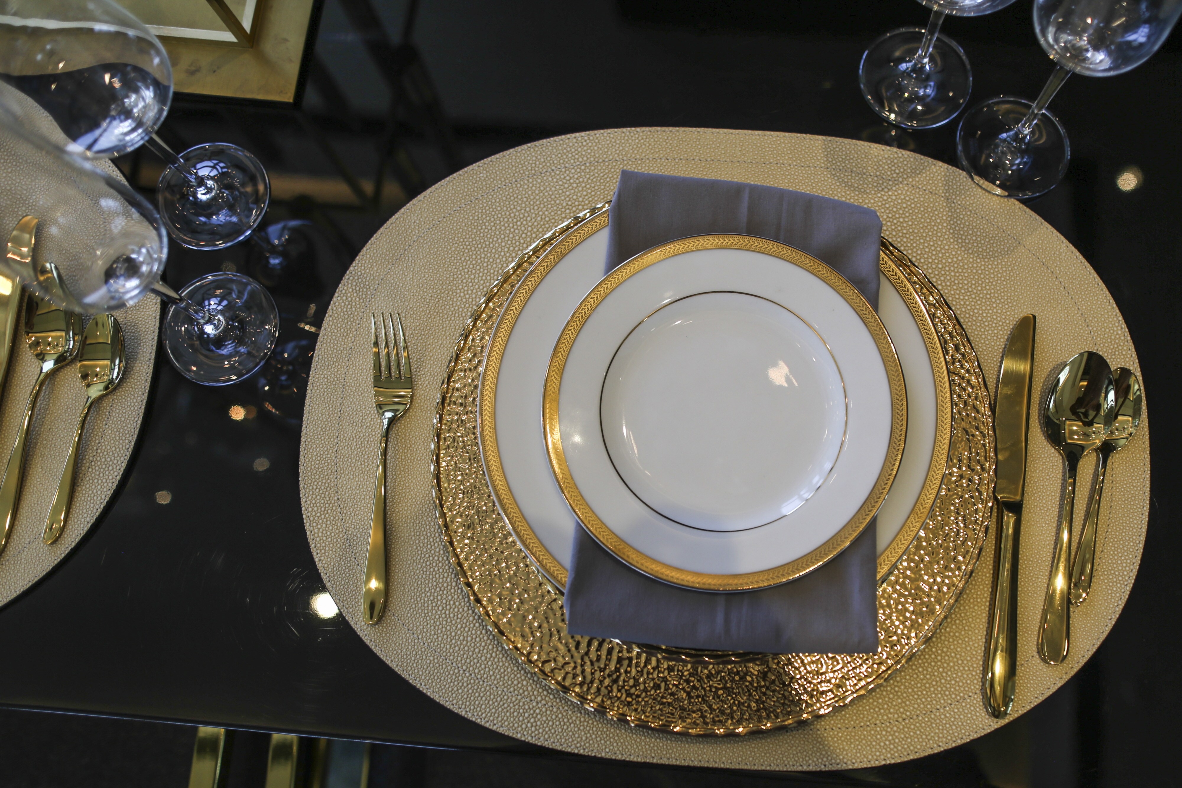 Dinnerware sits on a table inside. (Photographer: Dhiraj Singh/Bloomberg)
