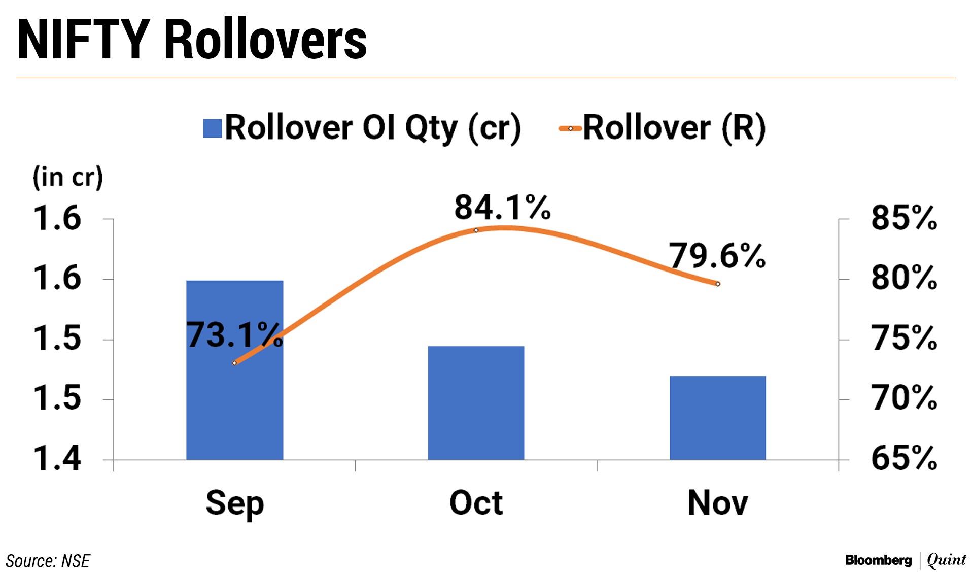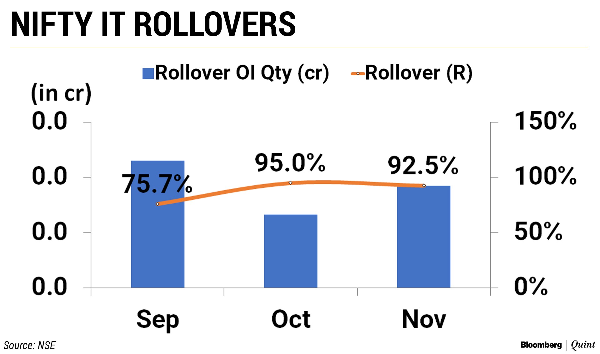 The Nifty rollover was higher than its three-month average of 75 percent but lower than the previous contract in absolute and percentage terms. That came even as the index closed at a record high for the November contract.