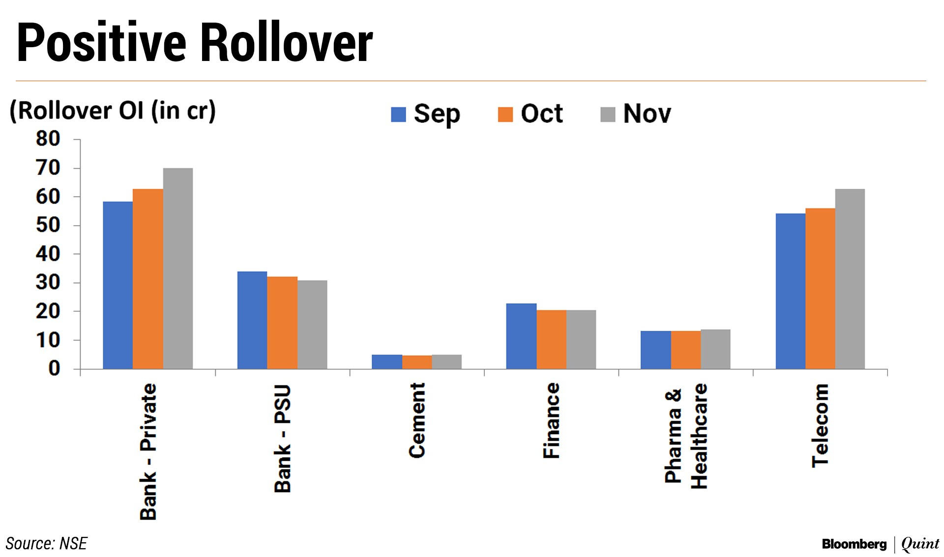 The Nifty Bank saw a strong rollover for December series stood at 70.6 percent with an open interest of 0.19 crore shares, compared with a rollover of 63.6 percent in October with an open interest of 0.08 crore shares. That implies the addition of long positions in December contracts.