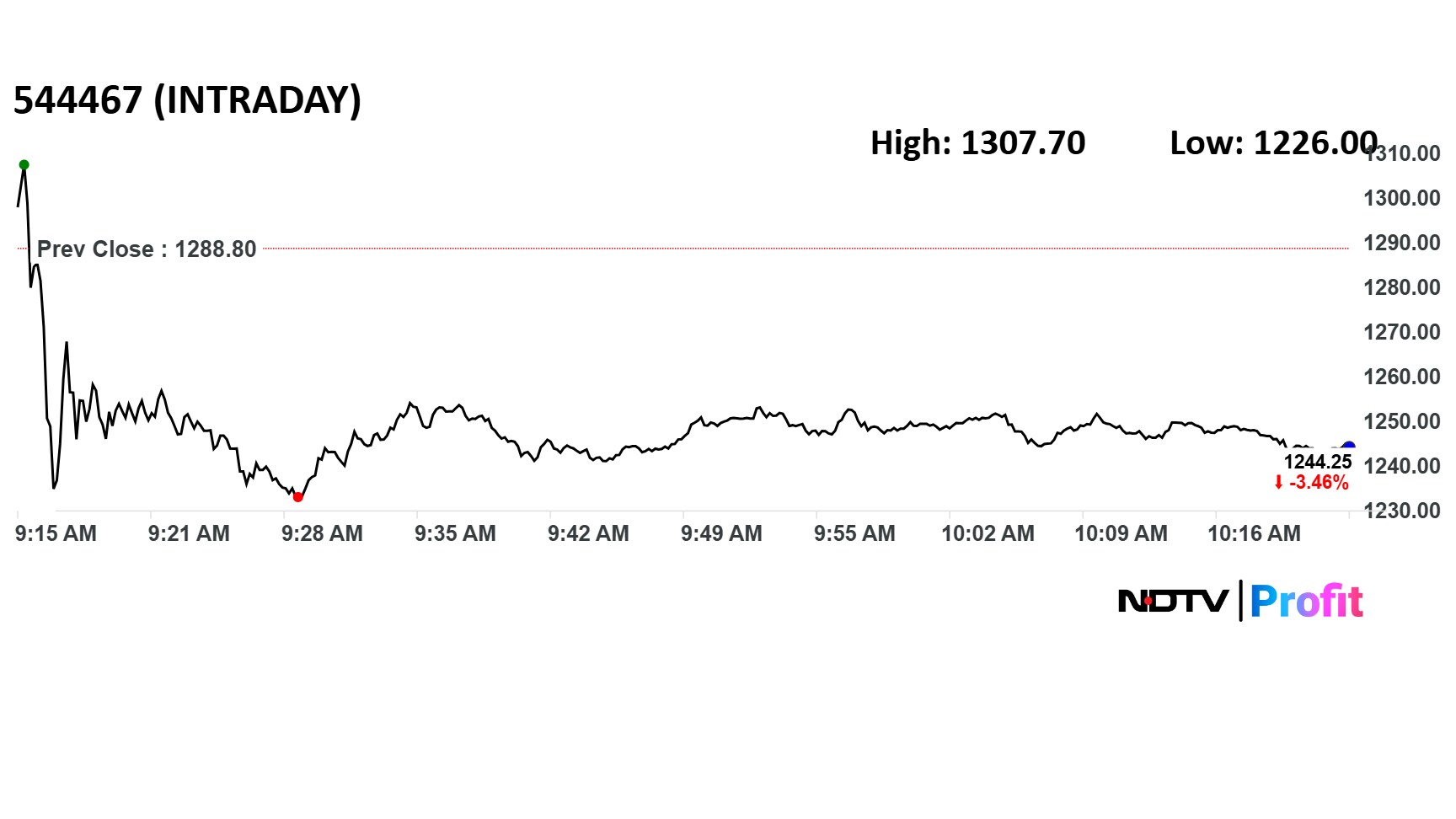 National Securities Depository Ltd.'s share price fell nearly 5% during early trade on Wednesday as its first-quarter revenue slipped.