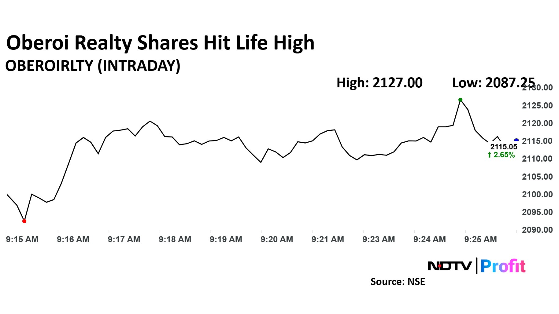 Shares of Oberoi Realty Ltd. hit an all-time high on Wednesday morning as Nomura has initiated coverage on the company with a 'buy' rating and a target price of Rs 2,500, signaling a potential upside of 19%. The brokerage cited robust growth prospects in pre-sales, annuity income, and business development as drivers for its optimistic outlook.