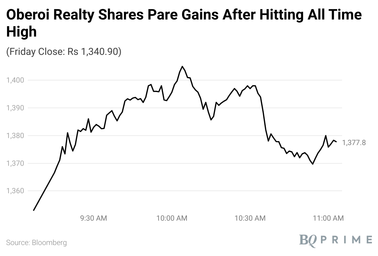 Shares of Oberoi Realty rose as much as 4.94%, before paring gains to trade 2.44% higher at 10:52 a.m. This compares to a 0.07% advance in the NSE Nifty 50.