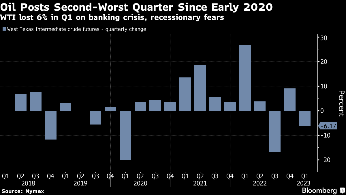 Prices have slid against a backdrop of gloomy US economic sentiment and a banking crisis that rattled broader markets. While oil bulls have hung their hopes on a rebound China's demand as it ends Covid Zero policies, the recovery has been slower than some expected.