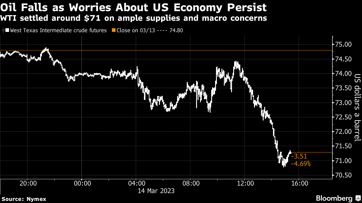 Crude has had a bumpy year so far as traders juggle concerns over a global economic slowdown and careful optimism regarding China's demand rebound. Inflation accelerated last month, raising the question as to whether the Federal Reserve would feel pressure to raise rates at its meeting next week despite ongoing financial turmoil in the banking system.