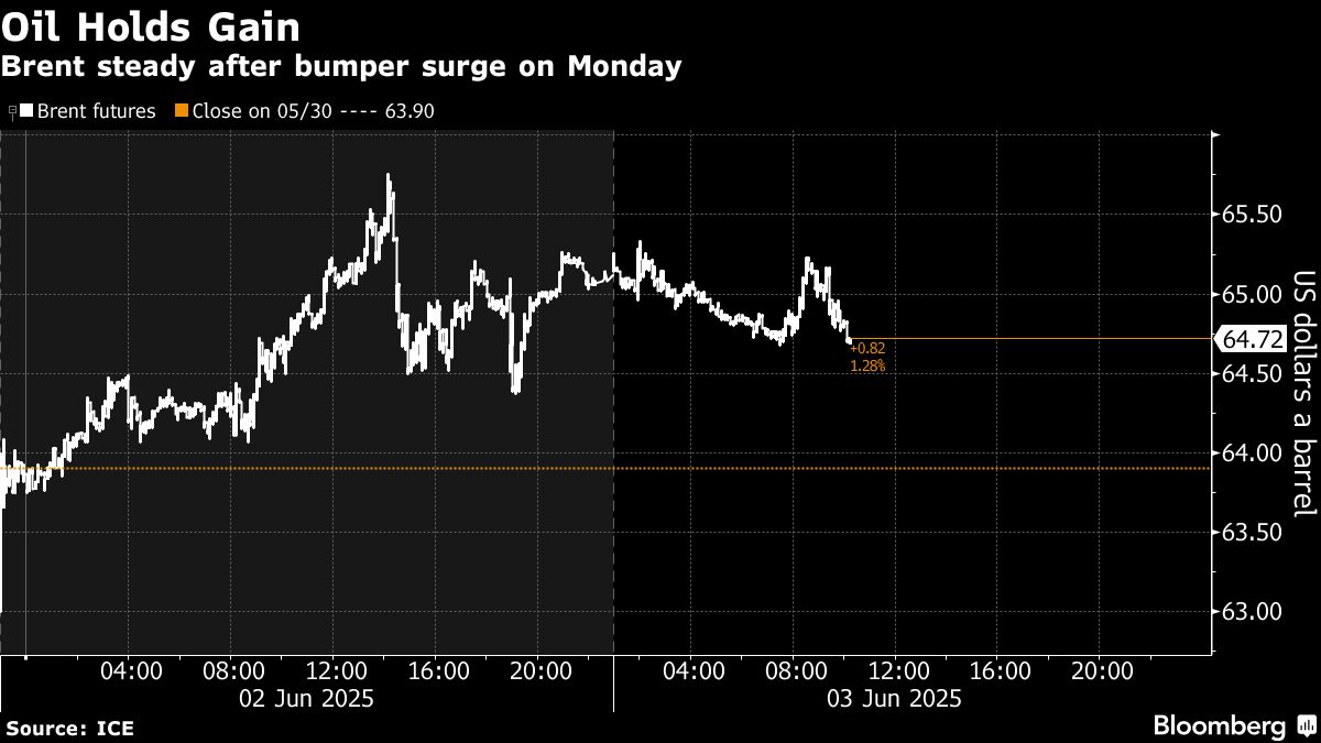 Brent rose as much as 4.7% on Monday after OPEC+ boosted supply in line with expectations, easing concerns of a bigger increase and leading to an unwinding of bearish bets made in advance of the decision over the weekend. Oil is still down about 13% this year after the producer group abandoned its former strategy of defending higher prices by curbing output and on concerns trade wars will hamper demand.