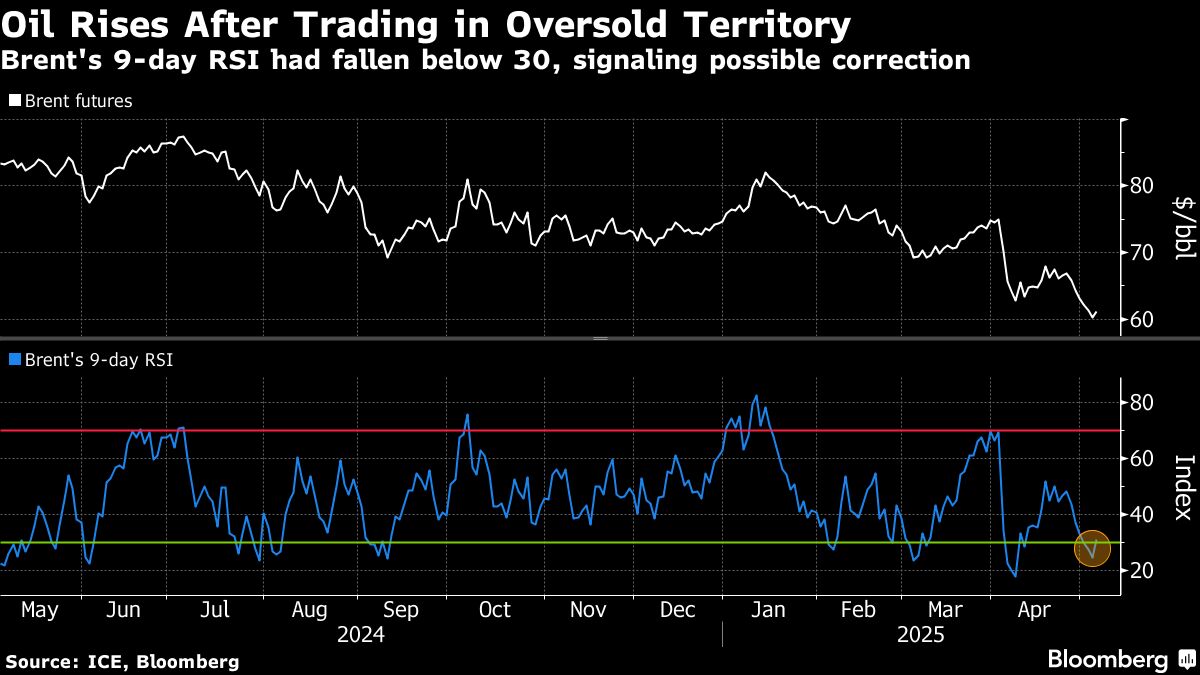 Brent advanced to trade near $61 a barrel after tumbling almost 10% over the past six sessions, and West Texas Intermediate rose to around $58. Both oil benchmarks recently dipped into oversold territory on the nine-day relative strength index. Chinese markets also reopened after a holiday.