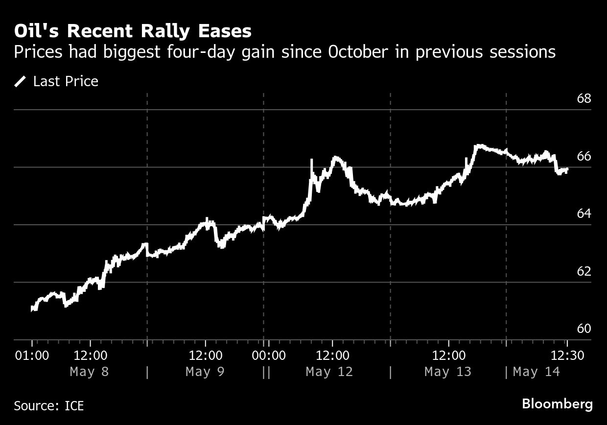 Brent dipped marginally near $66 a barrel after gaining almost 10% in the prior four sessions. West Texas Intermediate hovered around $63. Trump reiterated Wednesday that Tehran can't have a nuclear weapon — while Iran's foreign minister urged the US to take a “more realistic” approach to talks.