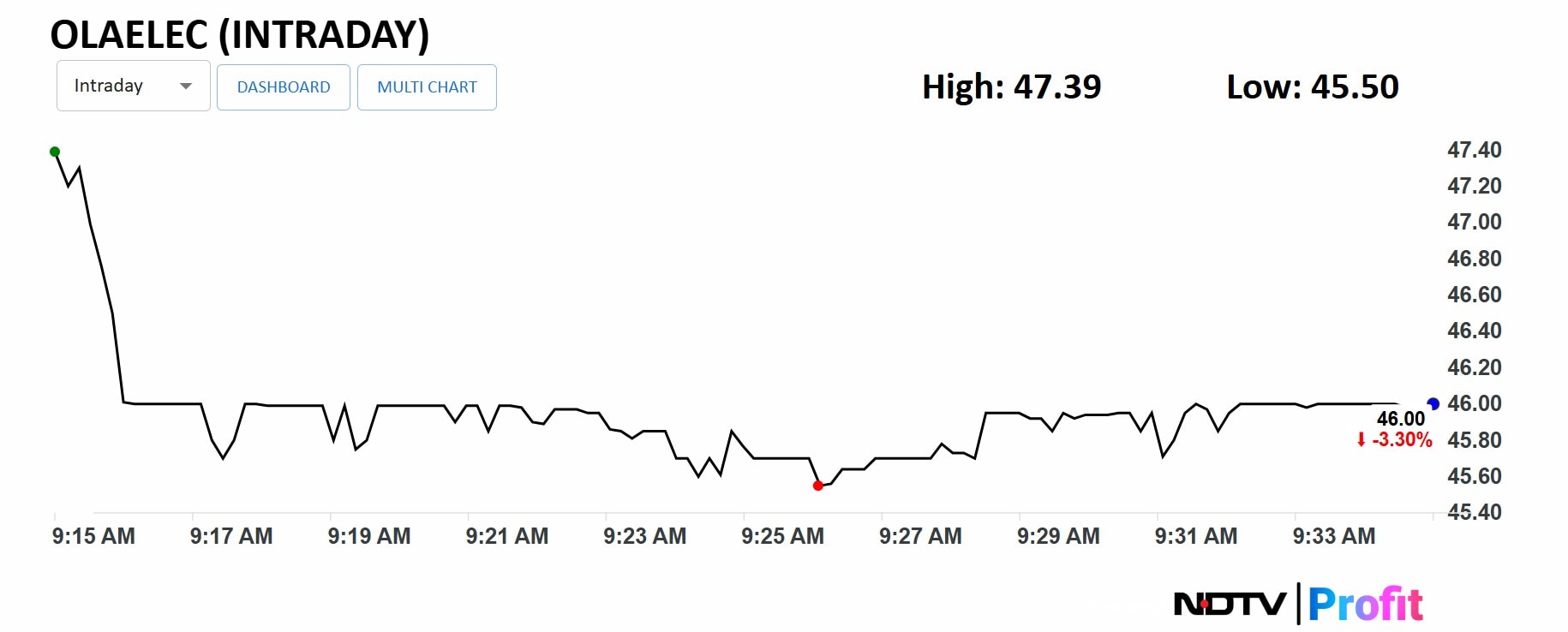 Shares of Ola Electric Ltd. slipped on Friday morning to hit over two-month low after the company reported its second-quarter numbers, which saw the electric vehicle manufacturer post a 43% decline in revenue at Rs 690 crore from Rs 1,214 crore reported in the previous fiscal.