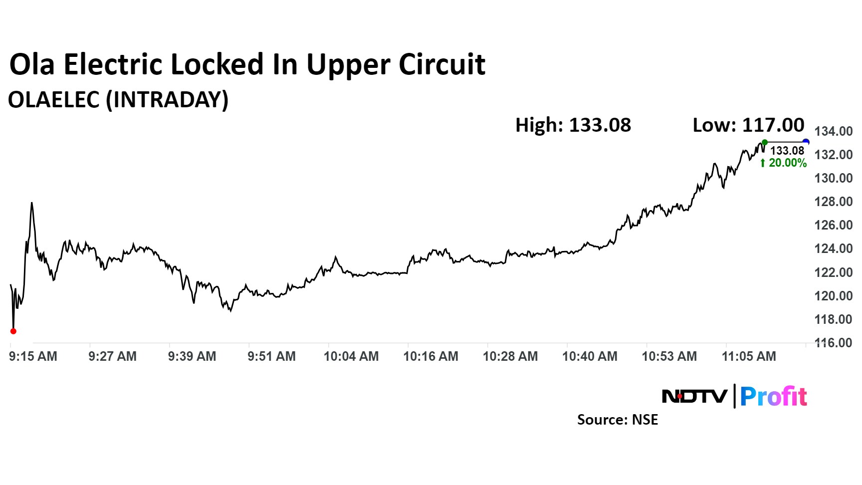 Shares of Ola Electric Mobility Solutions Ltd. hit an upper circuit of 20% on Friday after the company marked its entry into the electric motorcycle segment by launching Roadster Series. This is the third session that the stock is locked in upper circuit since listing on Aug. 9.