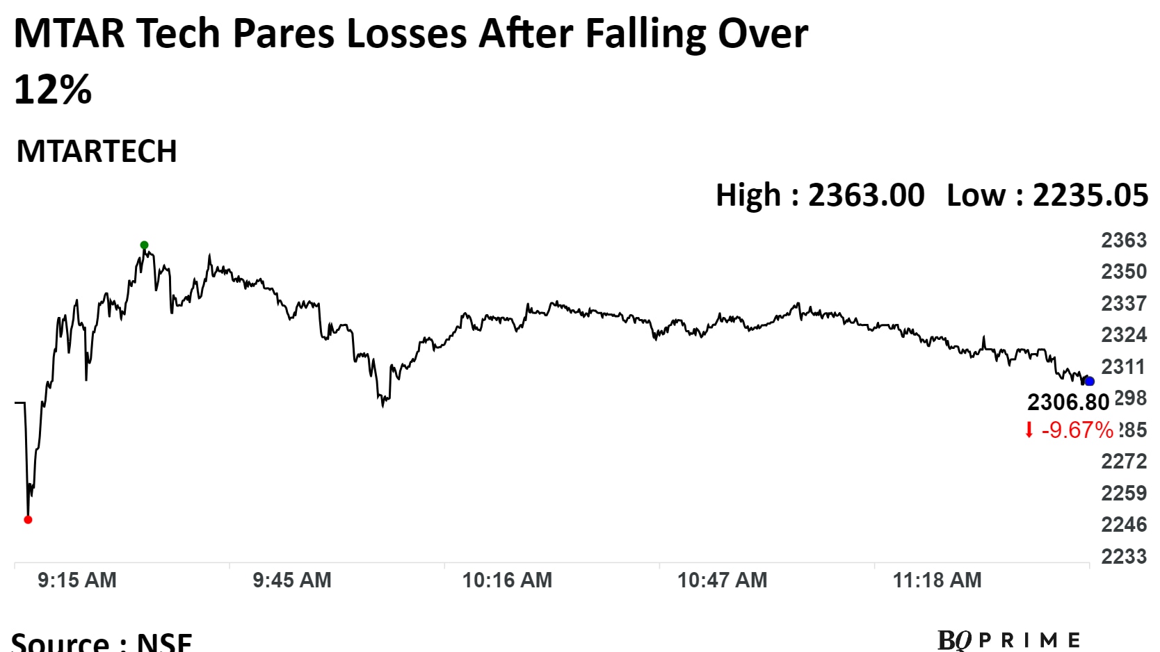 Shares of the company plunged as much as 12.5%, before paring some loss to trade 8.8% lower at 11:19 a.m., compared to a 0.1% decline in the NSE Nifty 50.