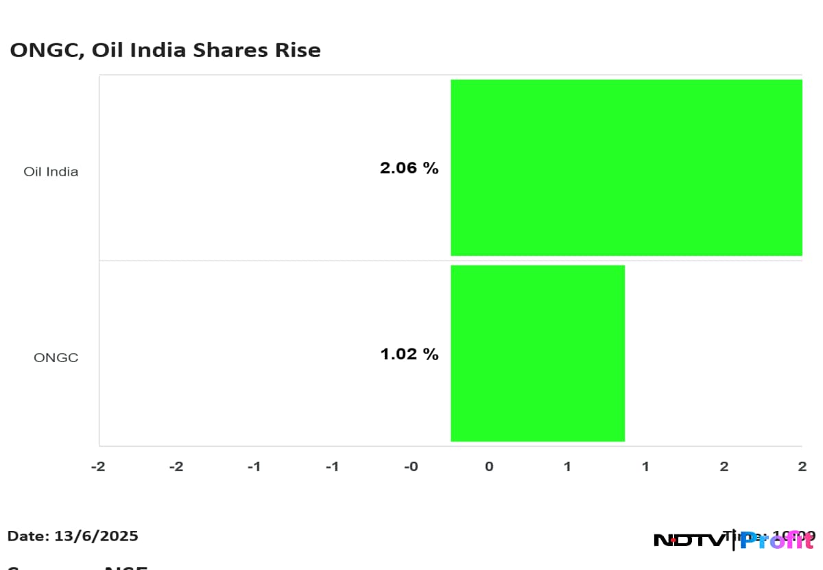 Shares of Oil and Natural Gas Corp. and Oil India Ltd. rose on Friday, defying market trends as crude oil prices rose amid Israel's air strikes in Iran. The rising crude prices helped improve the outlook on the net realisations earned by oil producers.